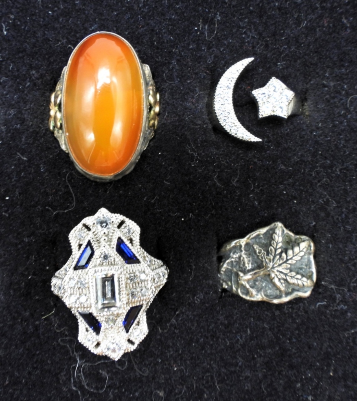 SIZES 4.5, 6, 6.5, 7. STERLING WITH GEMSTONES. 14 DWT