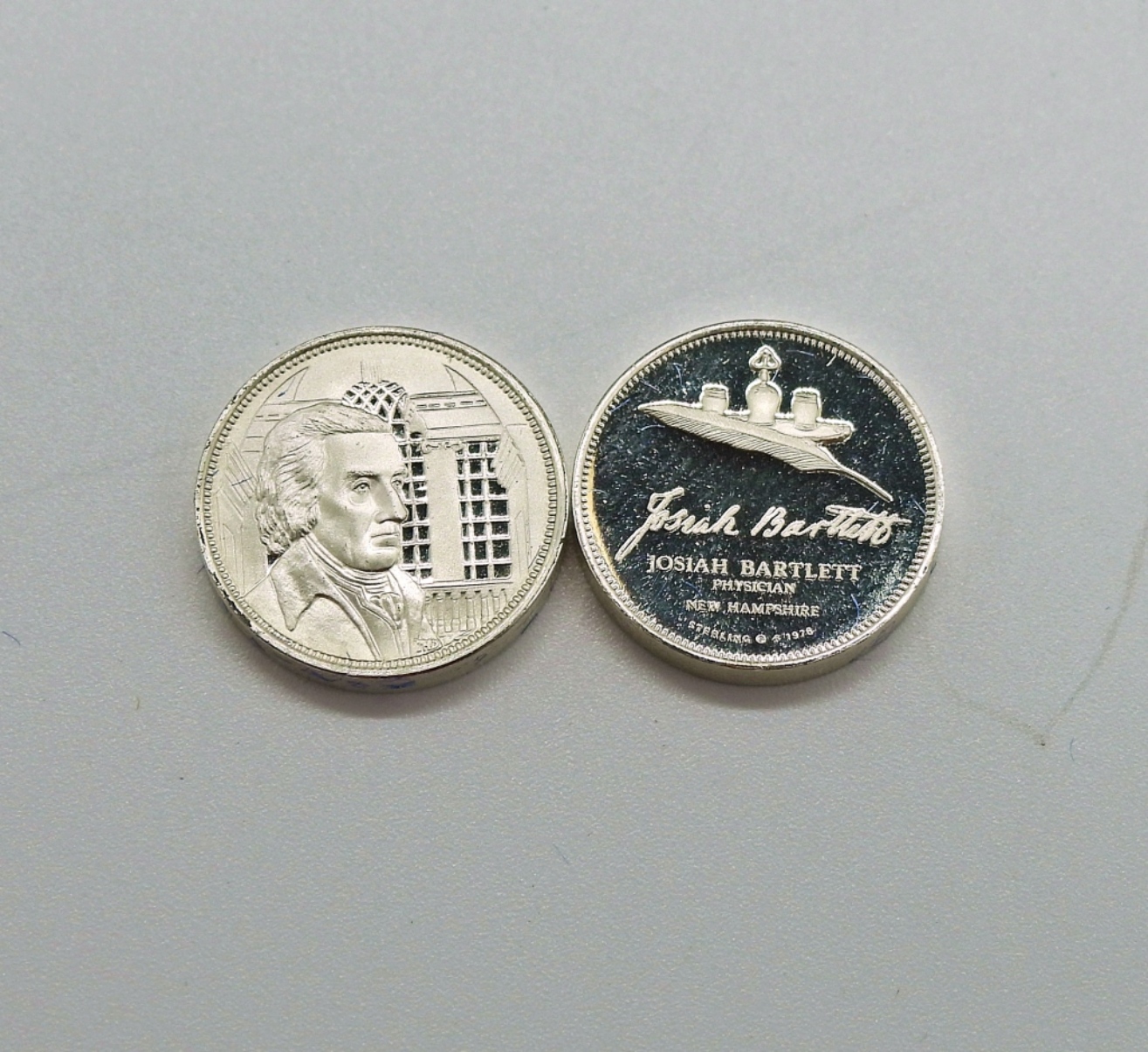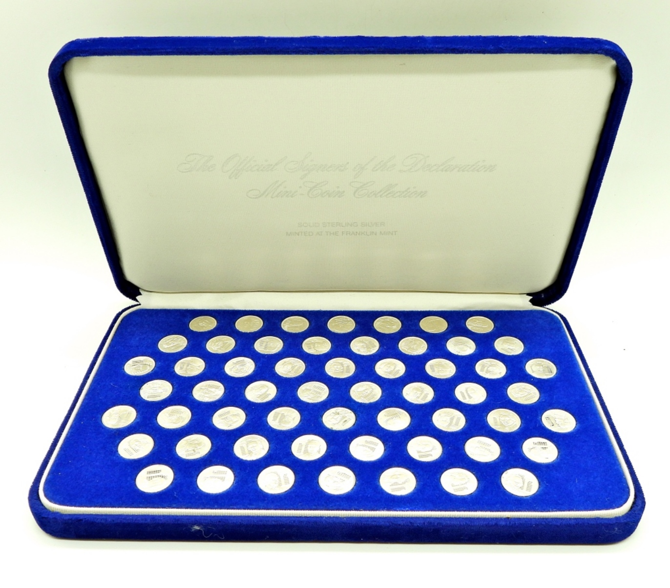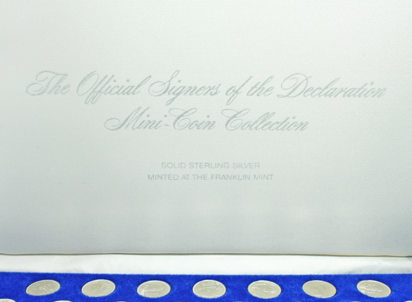 THE OFFICIAL SIGNER OF THE DECLARATION MINI-COIN COLLECTION, SOLID STERLING SILVER. MINTED AT THE FRANKLIN MINT. COMES IN A CASE. 56 MINI COINS. 61.6 DWT