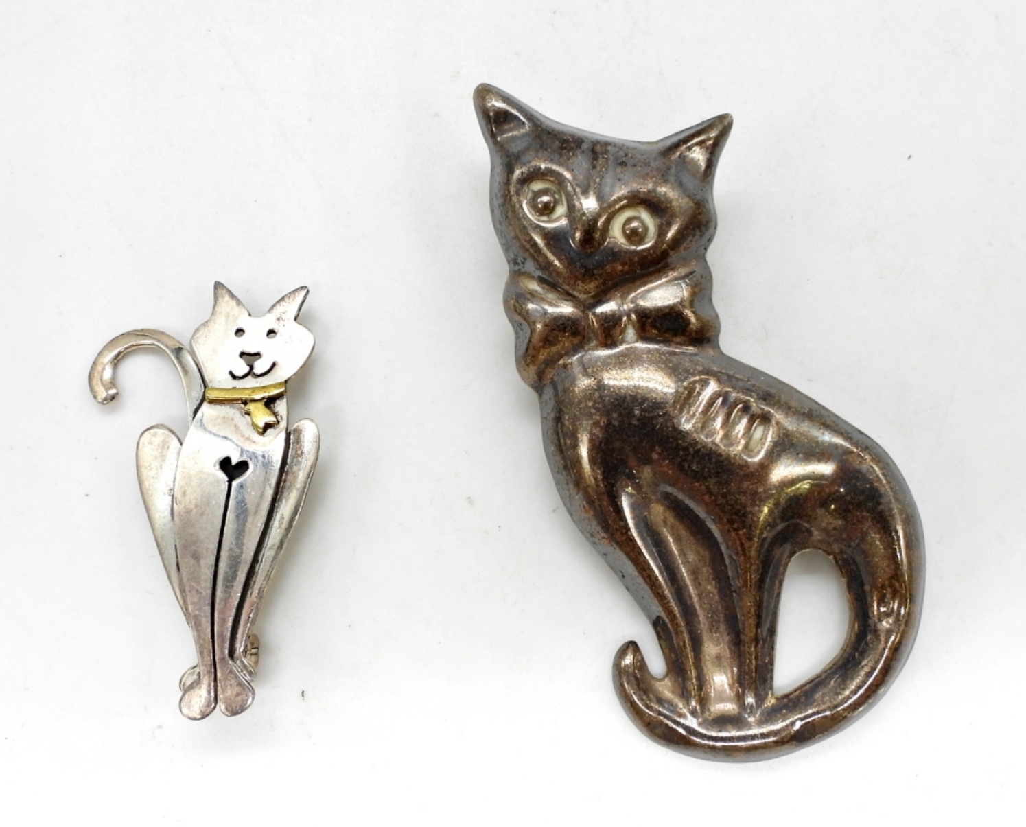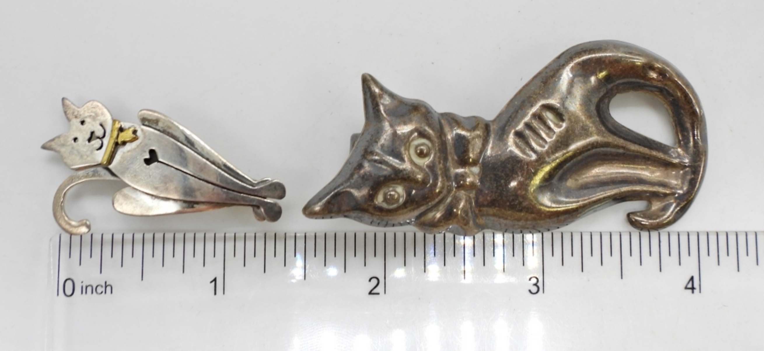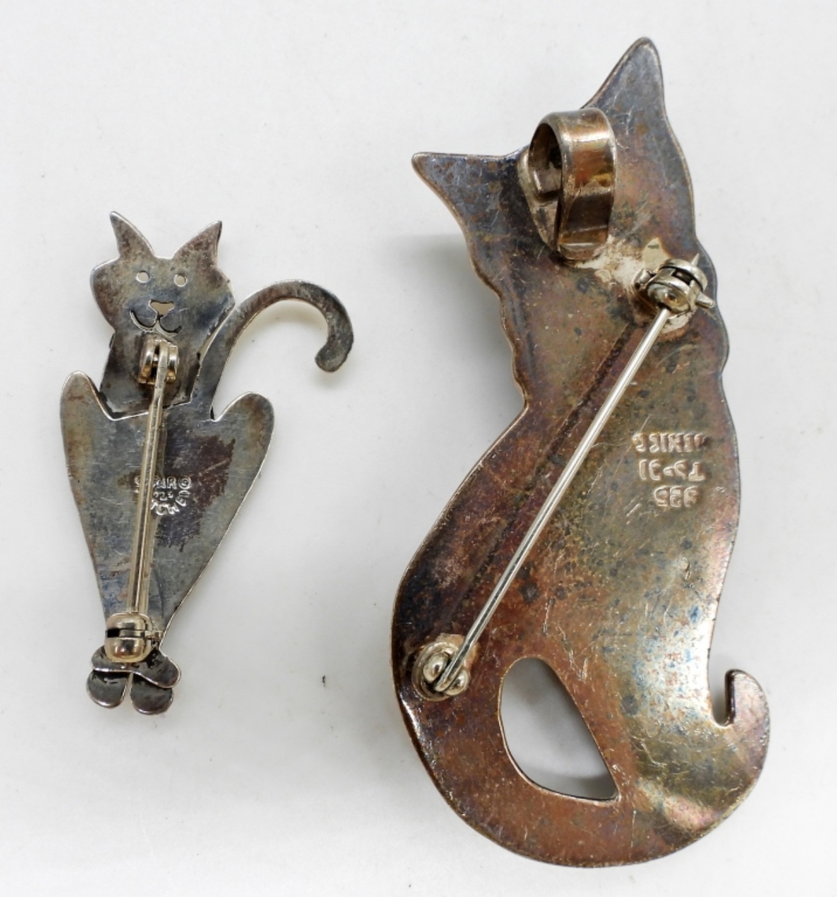 2 CAT SHAPED STERLING PINS, MARKED “MEXICO 925”. 13.8 DWT
