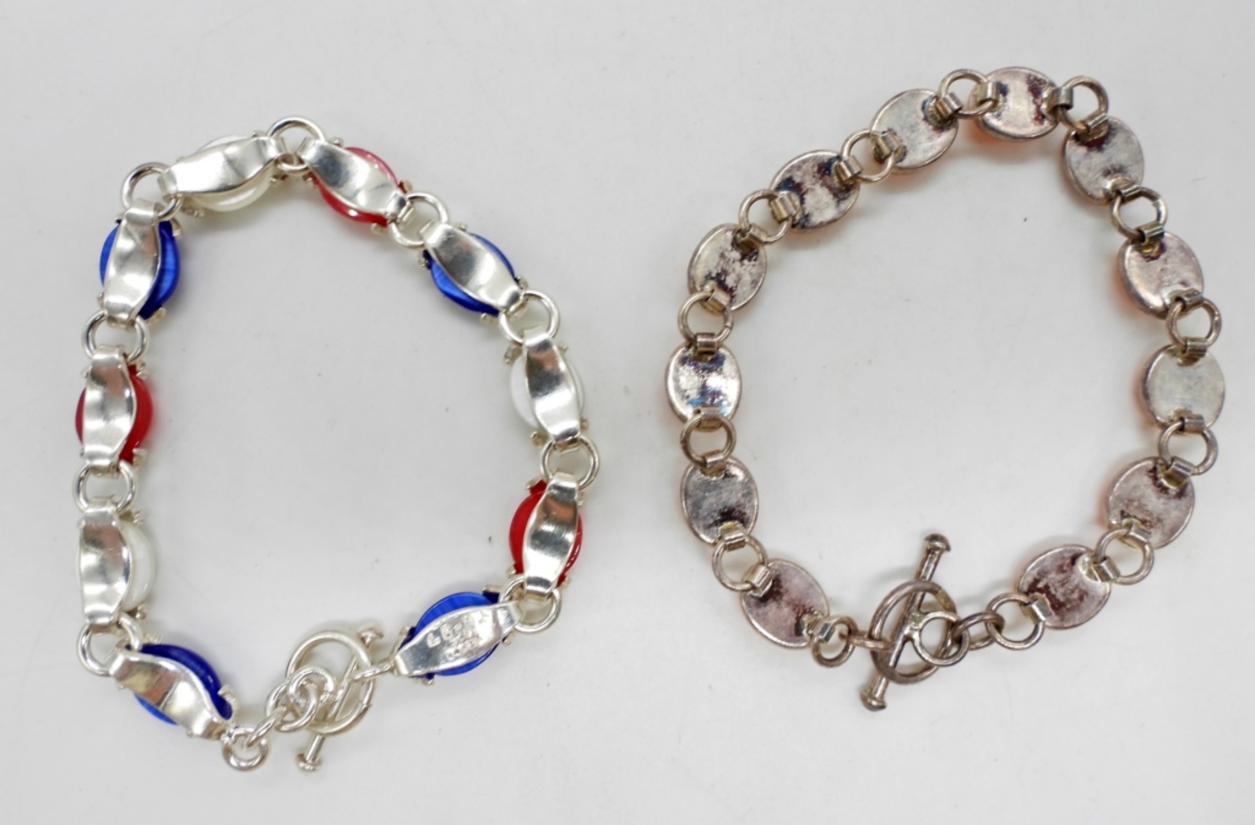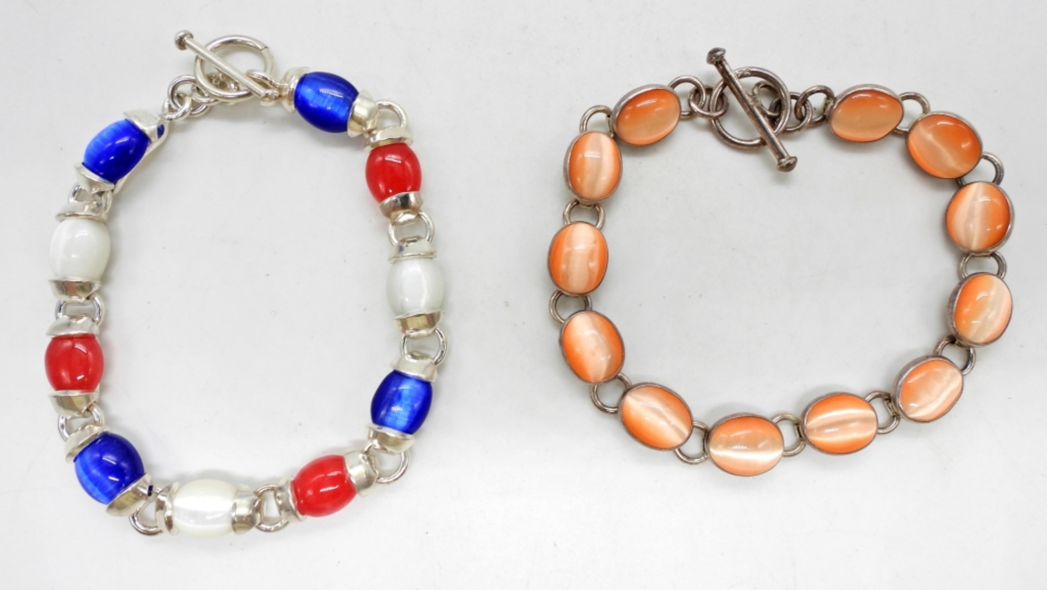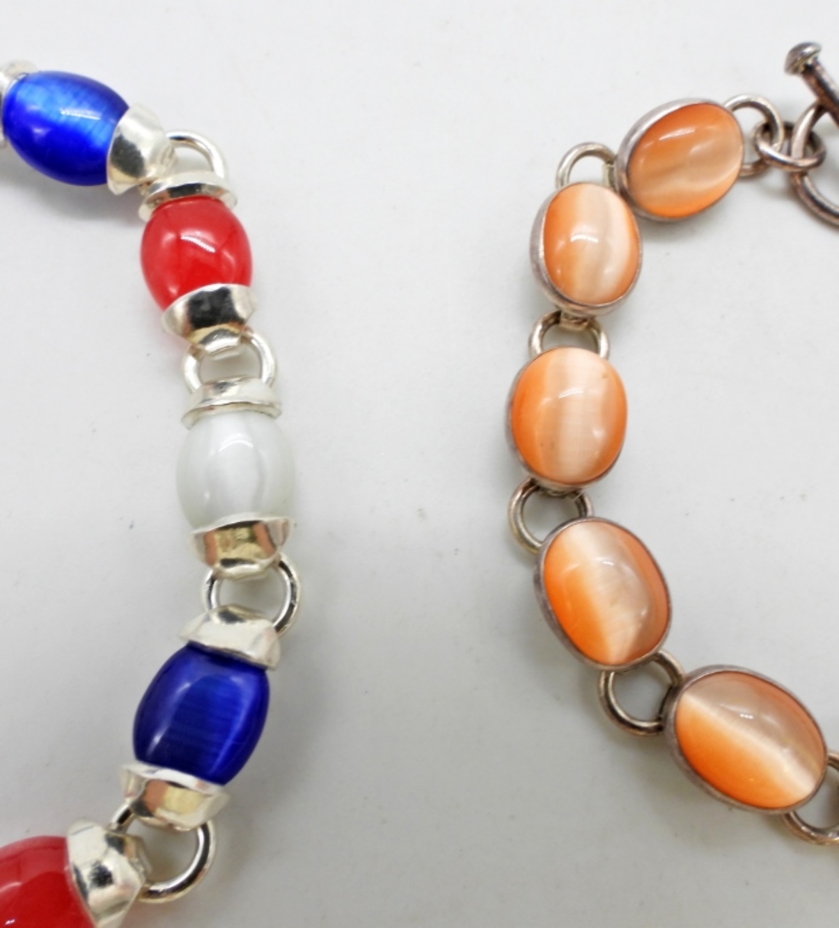 TWO CATS EYE BRACELETS IN STERLING SILVER. BOTH ARE 7.5″. 23.3 DWT