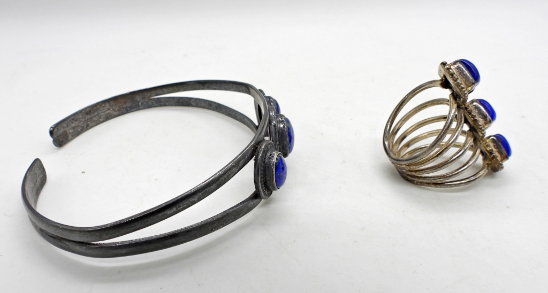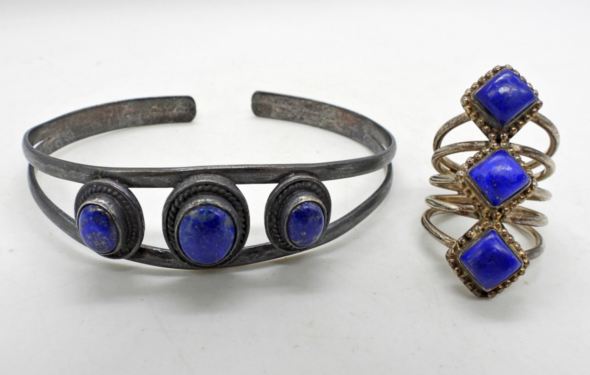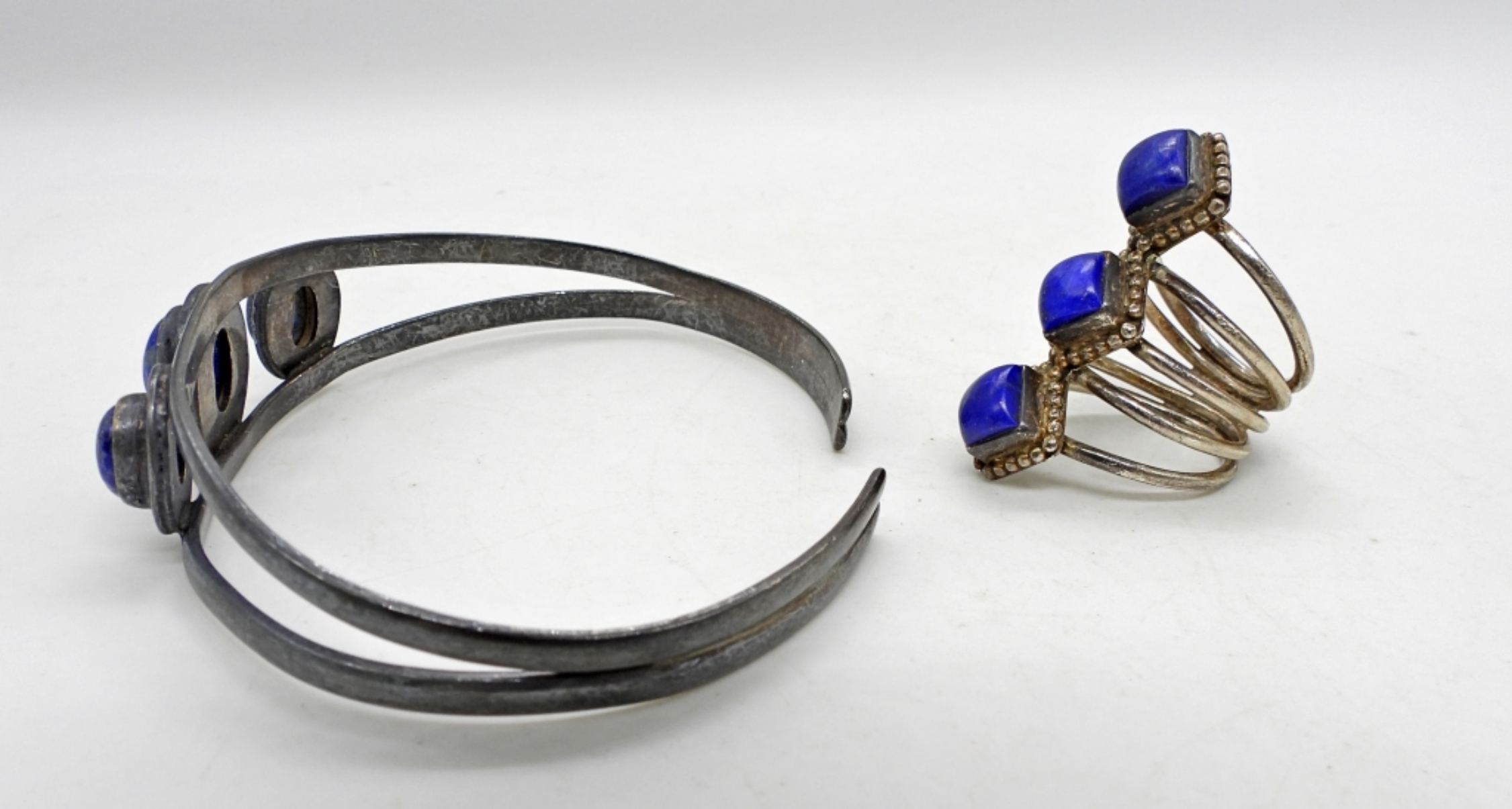 SIZE 6 LAPIS LAZULI 3 STONE RING IN STERLING. 7″ STERLING 3 STONE BRACELET. 18 DWT