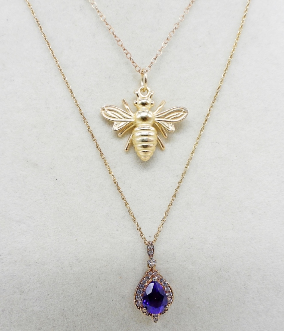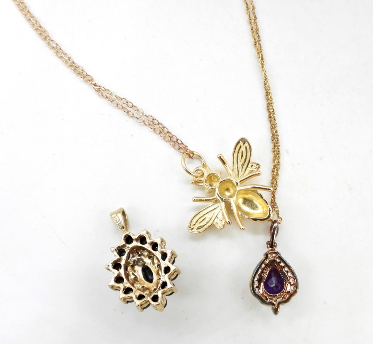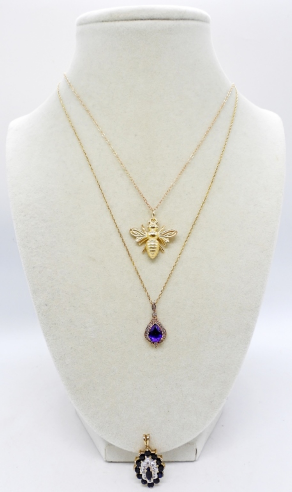 3 ADORABLE STERLING, GOLD TONE PENDANTS WITH 2 CHAINS. CHAINS ARE 21″ & 18″. 5.4 DWT