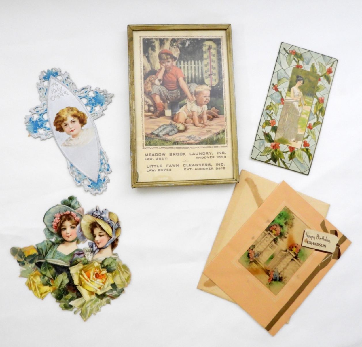 CALENDAR for MEADOW BROOK LAUNDRY plus (4) VINTAGE GREETING CARDS