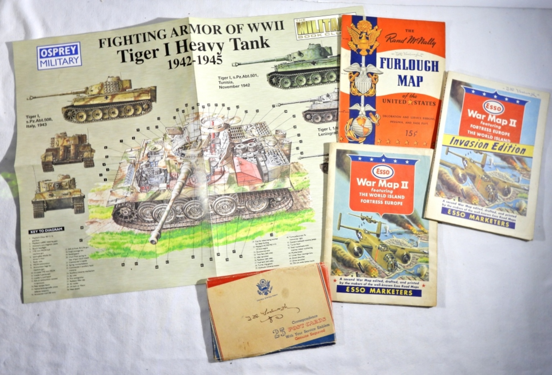 TIGER TANK GUIDE MAP & U.S. ARMED SERVICE POST CARDS blank in ORIGINAL PACK