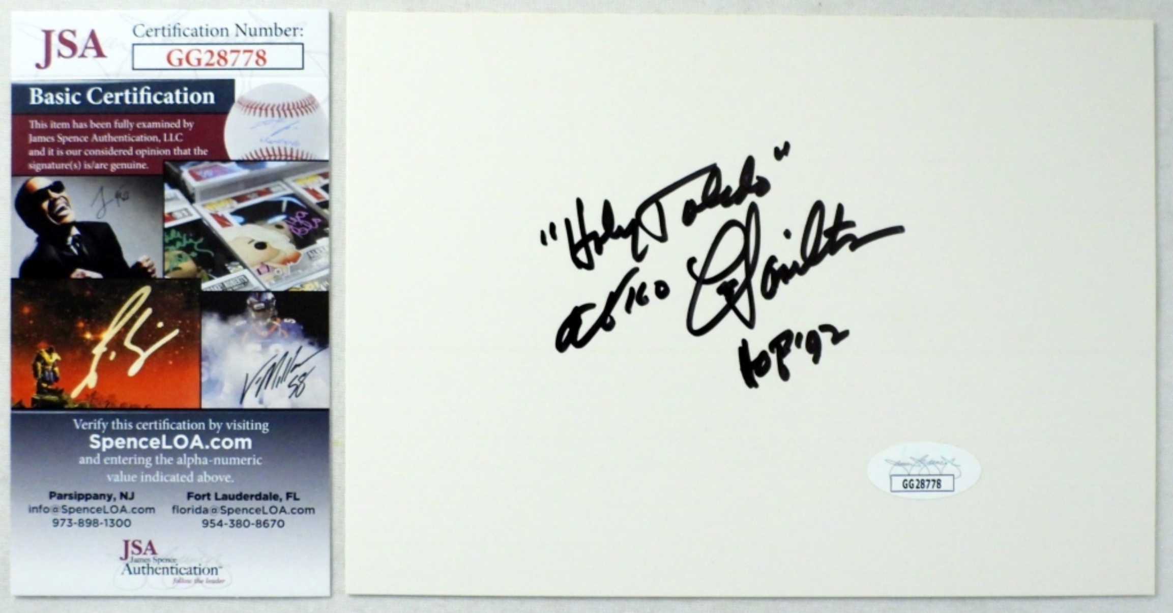 HOFer ’92 on 5×7 POSTCARD with JSA CERT