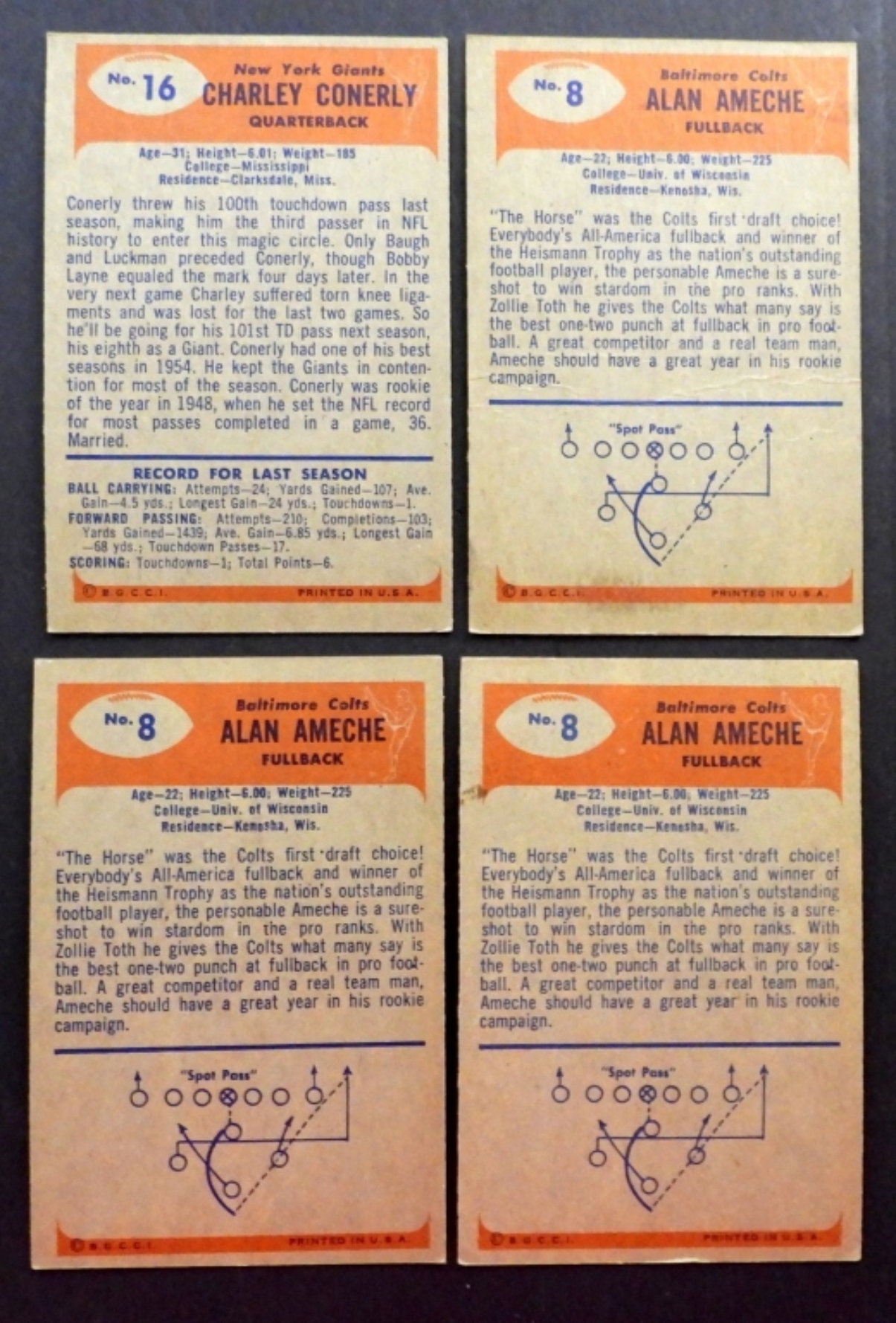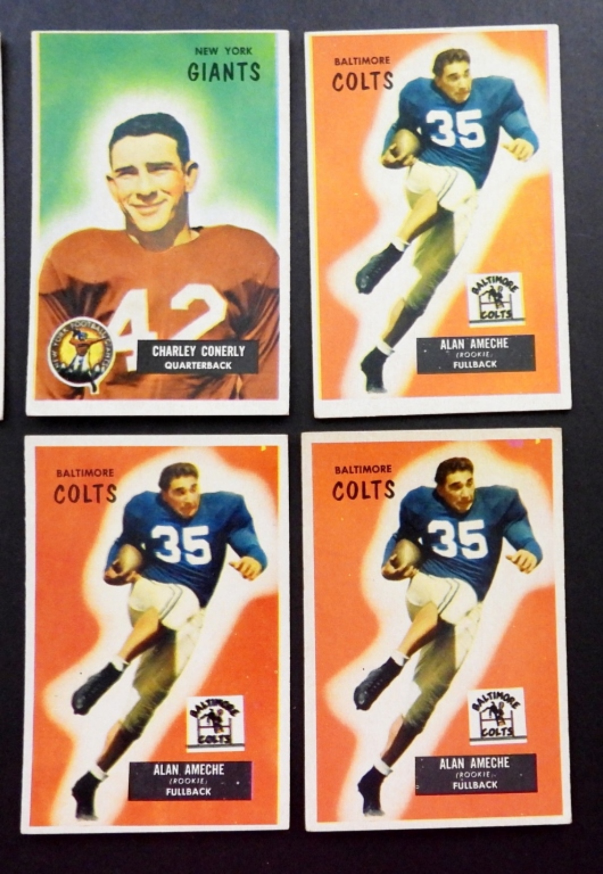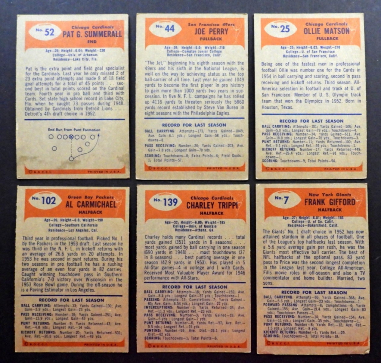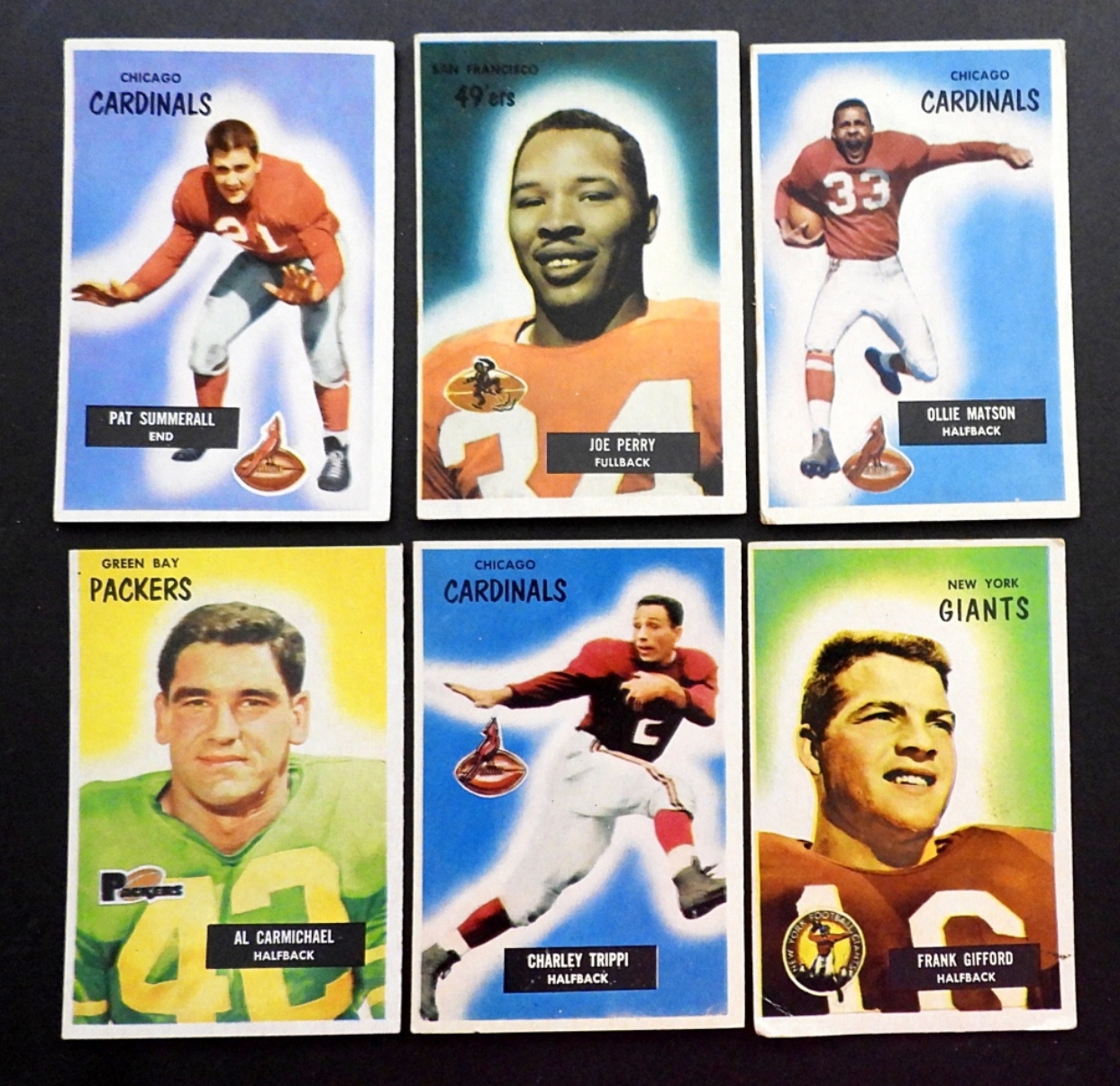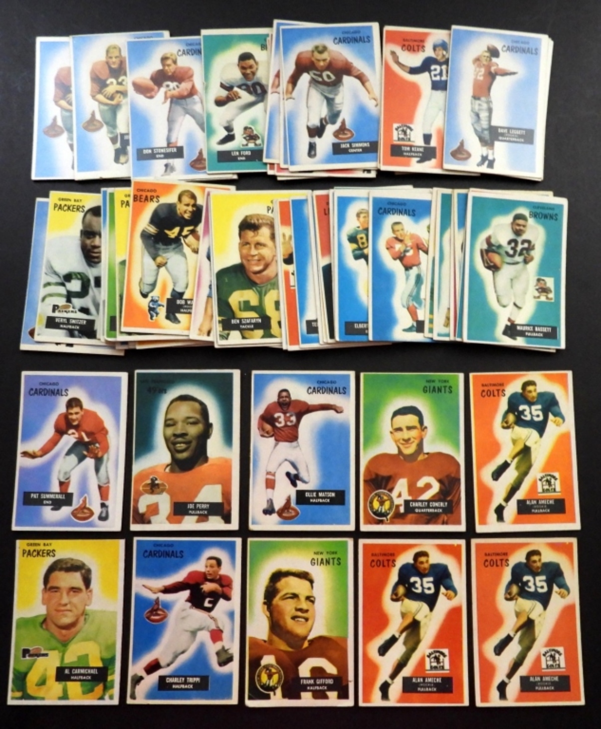 NICE EX-EX+ few VGEX//VG+ includes CARMICHAEL, TRIPPI, GIFFORD vg, (3) AMECHE, CONERLY, MATSON, PERRY, SUMMERALL & OTHER NFL PLAYER CARDS