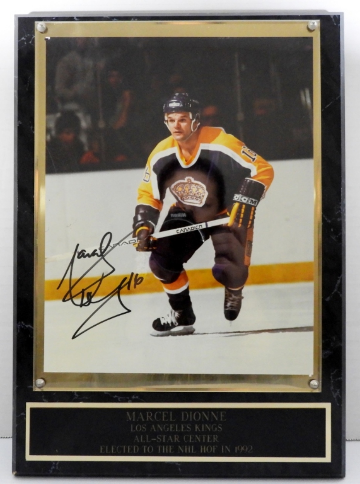MARCEL DIONNE AUTOGRAPHED PLAQUE WITH NAME PLATE L.A. KINGS ALL-STAR CENTER HOF 1992 – NO COA