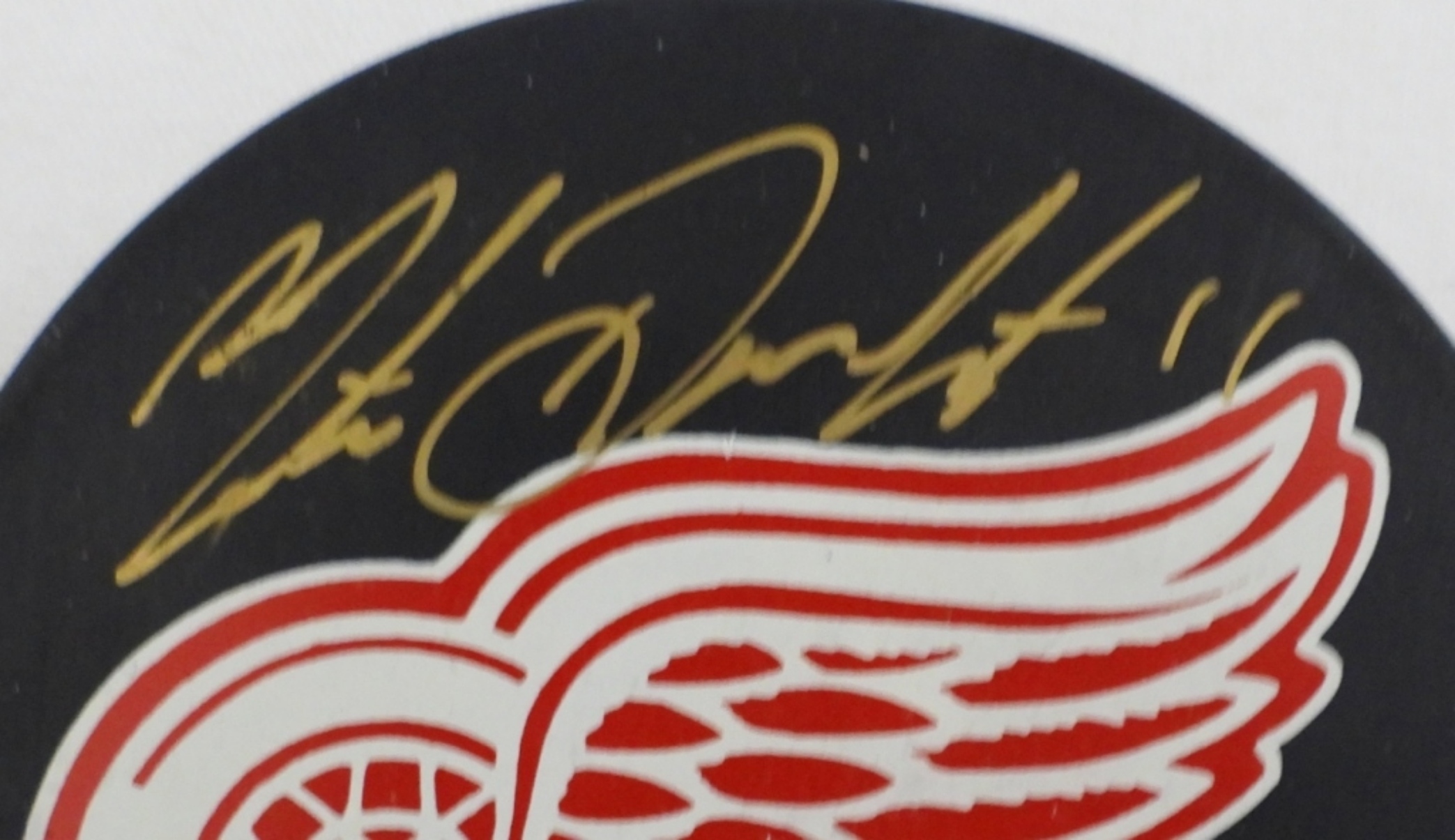 SIGNED ON THE OFFICIAL LICENSED PRODUCT OF THE NHL RED WING PUCK, COA FROM TOM’S COLLECTIBLES #59 FROM 1999