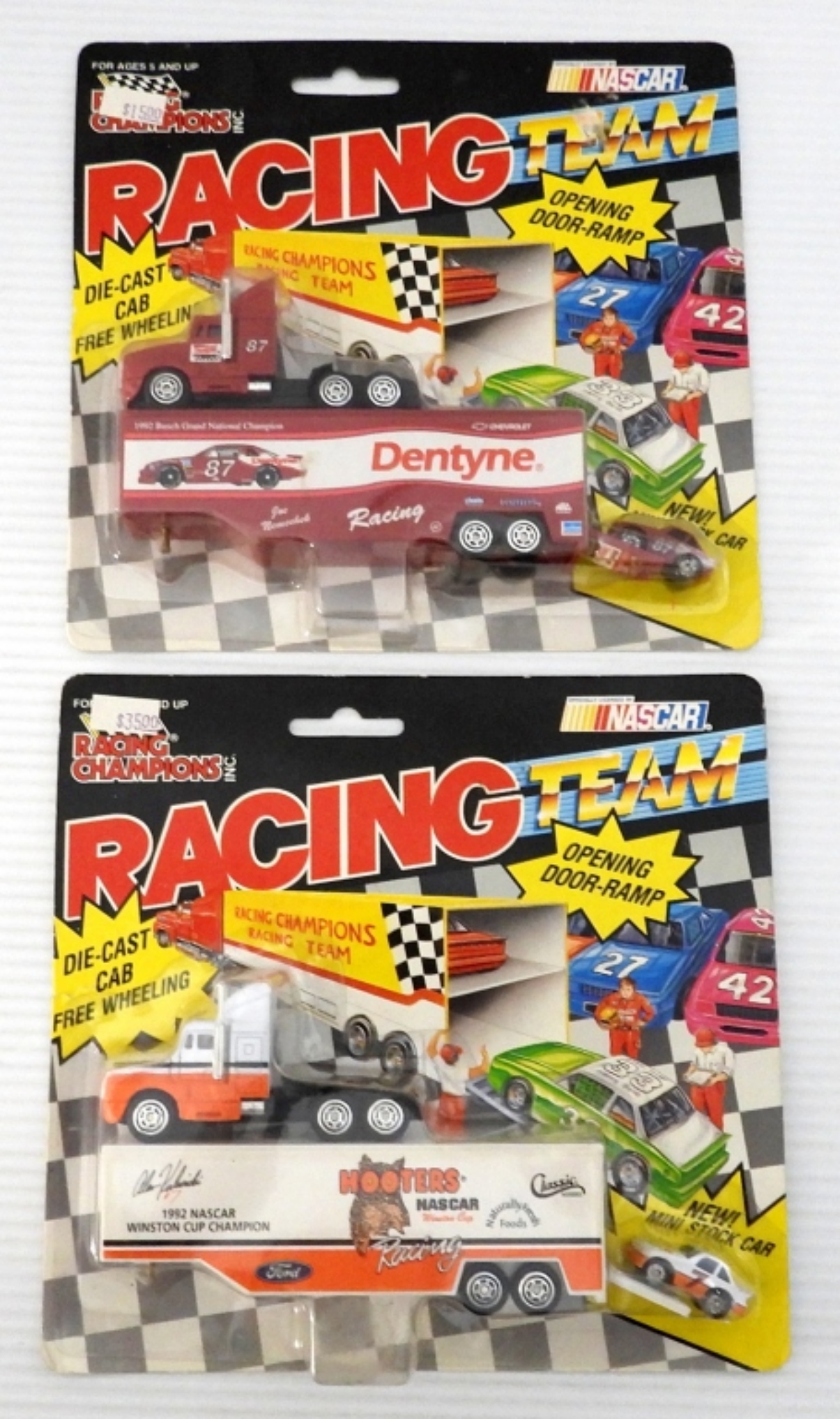 FACTORY SEALED BRAND NEW 1992 – NASCAR RACING TEAM JOE NEMECHEK 1992 BUSCH GRAND NATIONAL CHAMPION; ALAN KULWICKI #7 HOOTERS 1992 WINSTON CUP CHAMPION TRANSPORTER