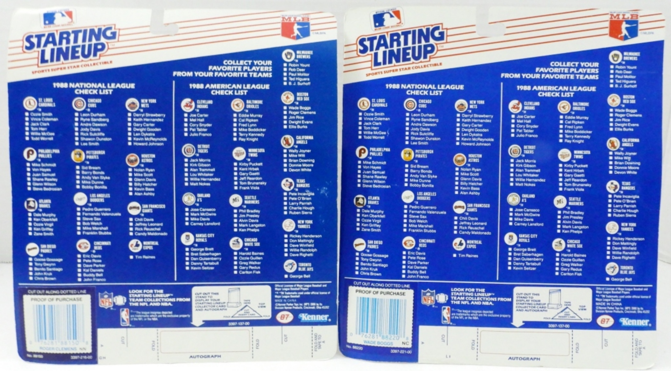 MADE BY KENNER, 1- ROGER CLEMENS, 1- WADE BOGGS, BOXES HAVE NORMAL WEAR FROM THE YEARS