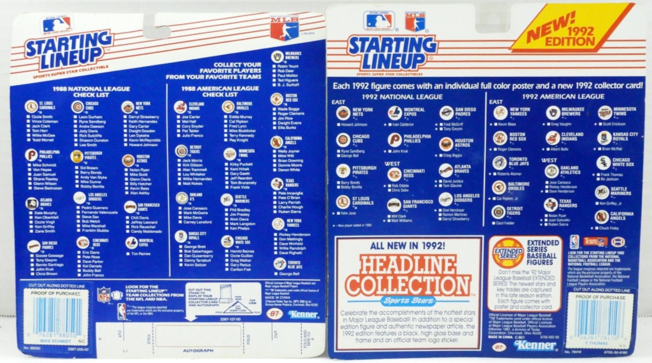 MADE BY KENNER 1- 1988 MIKE SCHMIDT 1-1992 FRANK THOMAS BOTH BOXES HAVE NORMAL WEAR FROM THE YEARS.