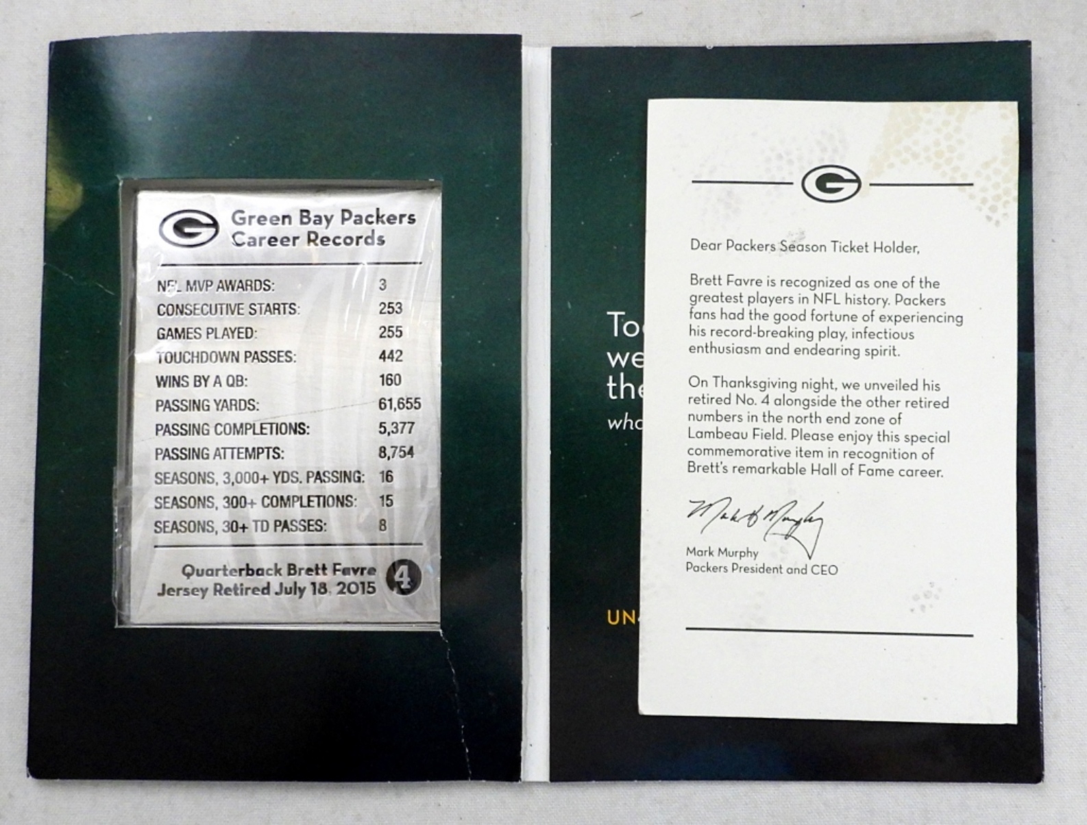 ALSO INCLUDES COMMEMORATIVE CARD RETIRED NO. 4 UNVEILING 2015, NO COA