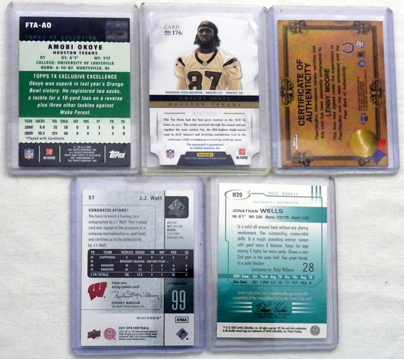 LENNY MOORE, DWIGHT JONES, JONATHAN WELLS, J.J. WATT, & AMOBI OKOYE – ALL DIFFERENT DRAFT PICKS & ROOKIES