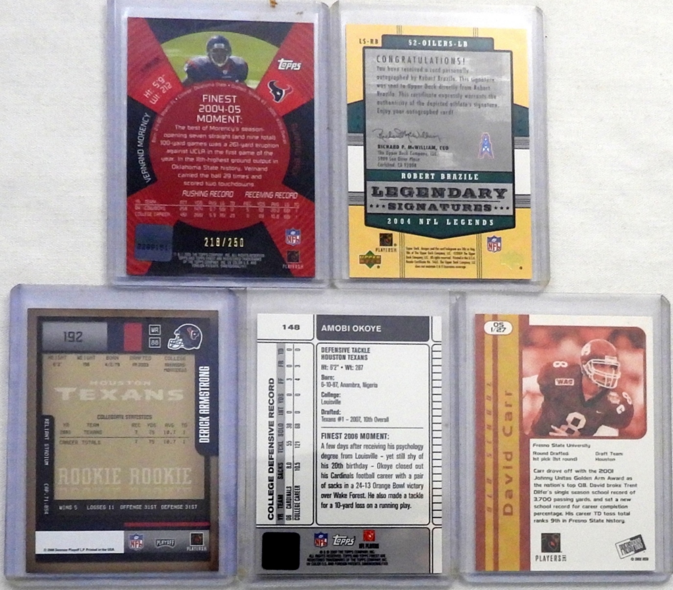 DERICK ARMSTRONG, DAVID CARR, AMOBI OKOYE, VERNAND MORENCY, & ROBERT BRAZILE – ALL DIFFERENT DRAFT PICKS & ROOKIES