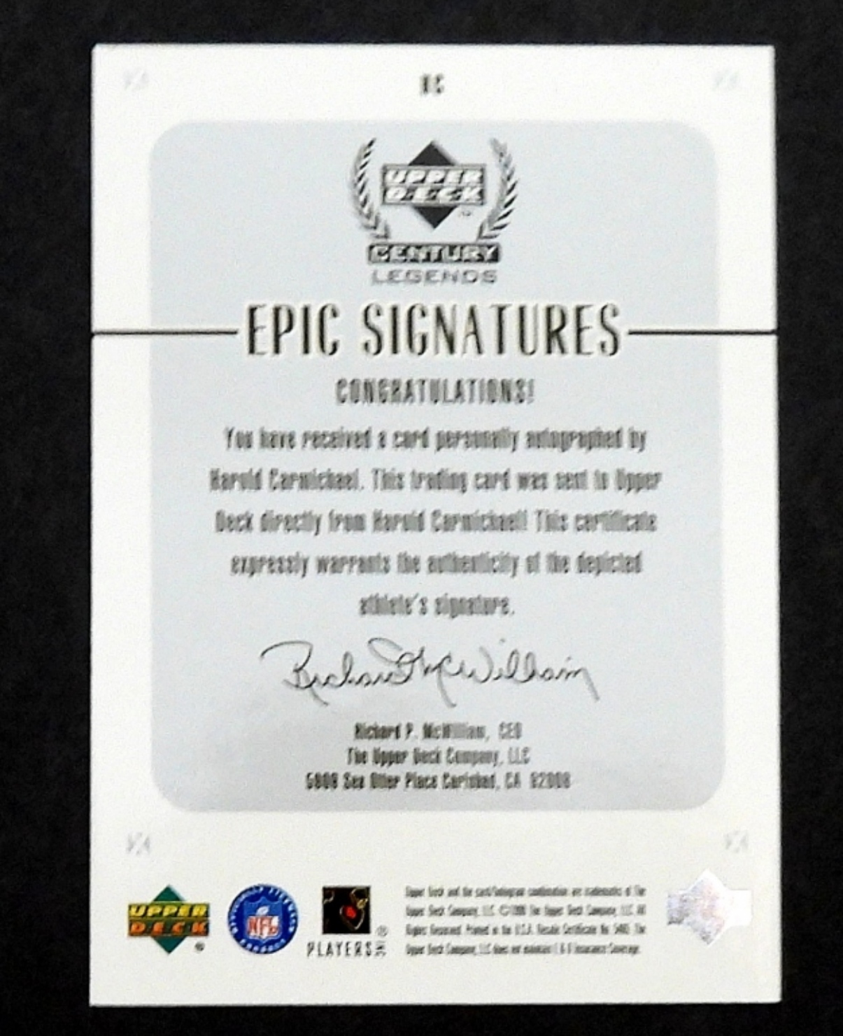 AUTOGRAPHED #17 HAROLD CARMICHAEL UPPER DECK CENTURY LEGENDS EPIC SIGNATURES