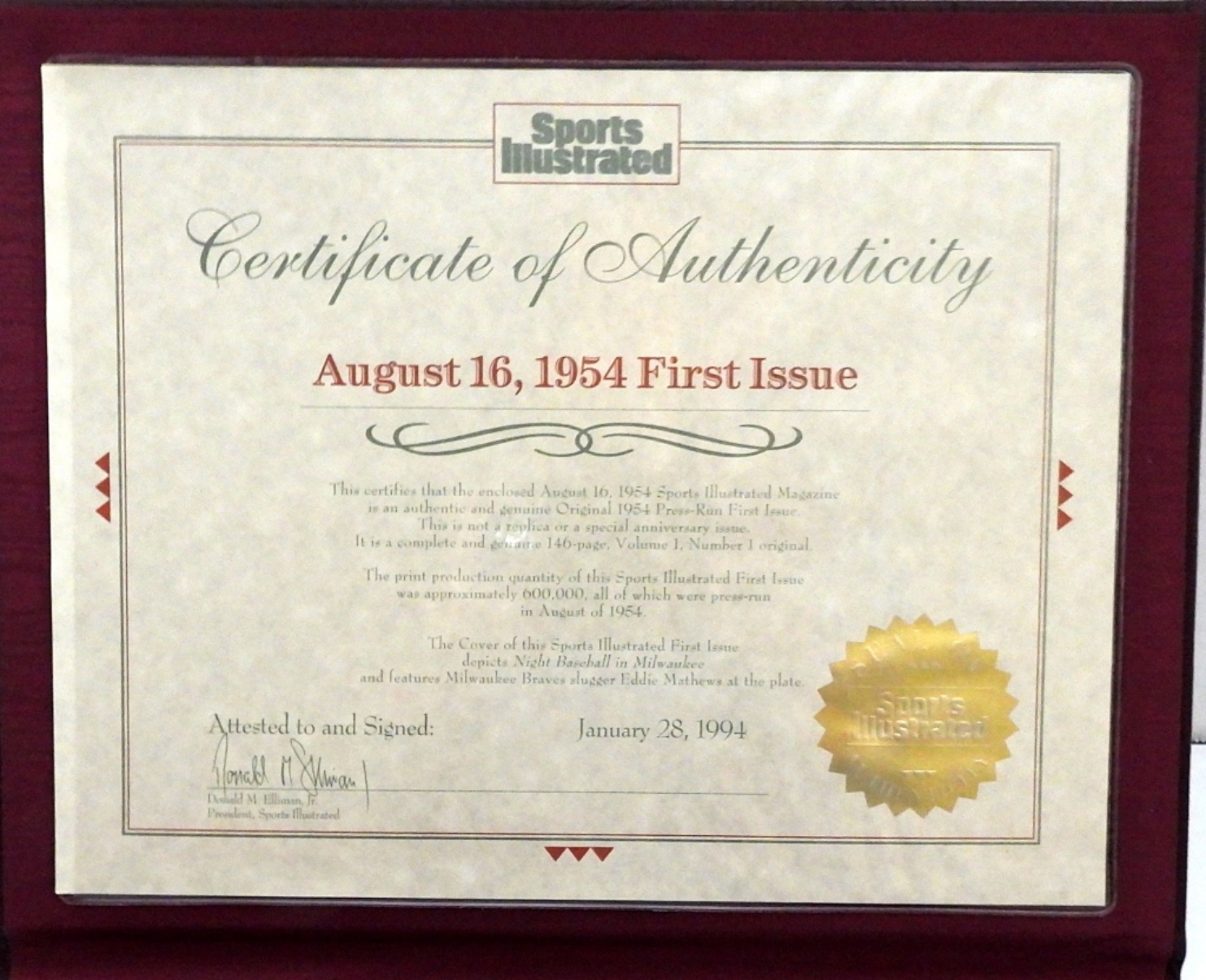 BEAUTIFUL CONDITION in SPORTS ILLUSTRATED FOLDER & COA