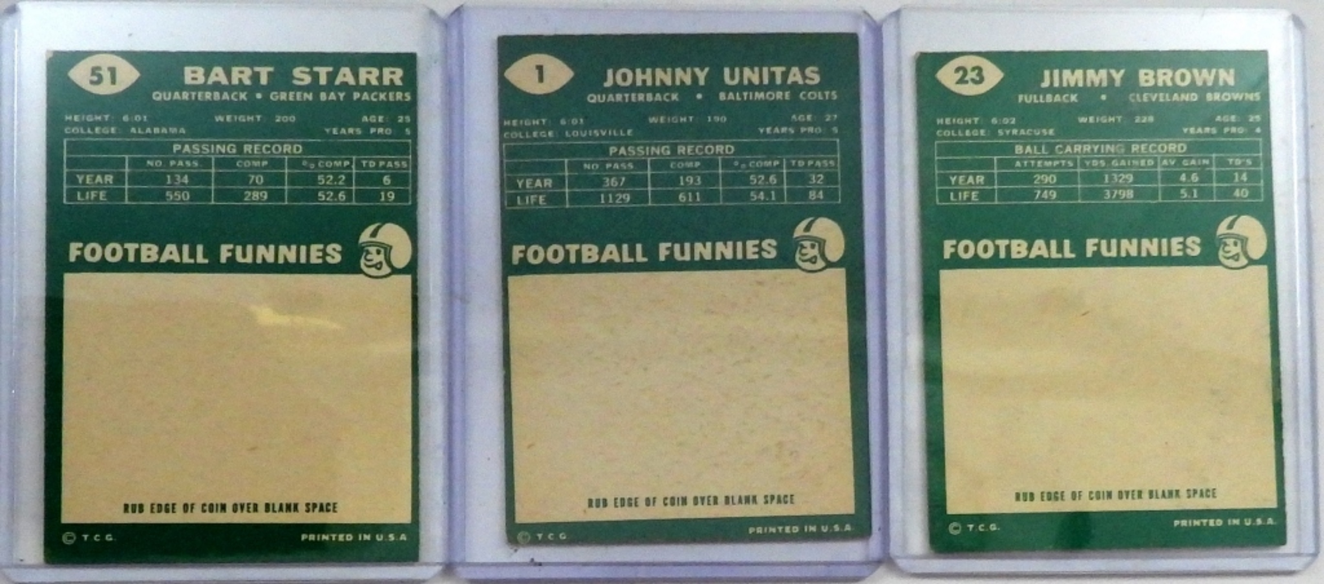 OVERALL NICE EX or BETTER – GREAT COLOR/GLOSS UNITAS, BROWN, STARR Exs