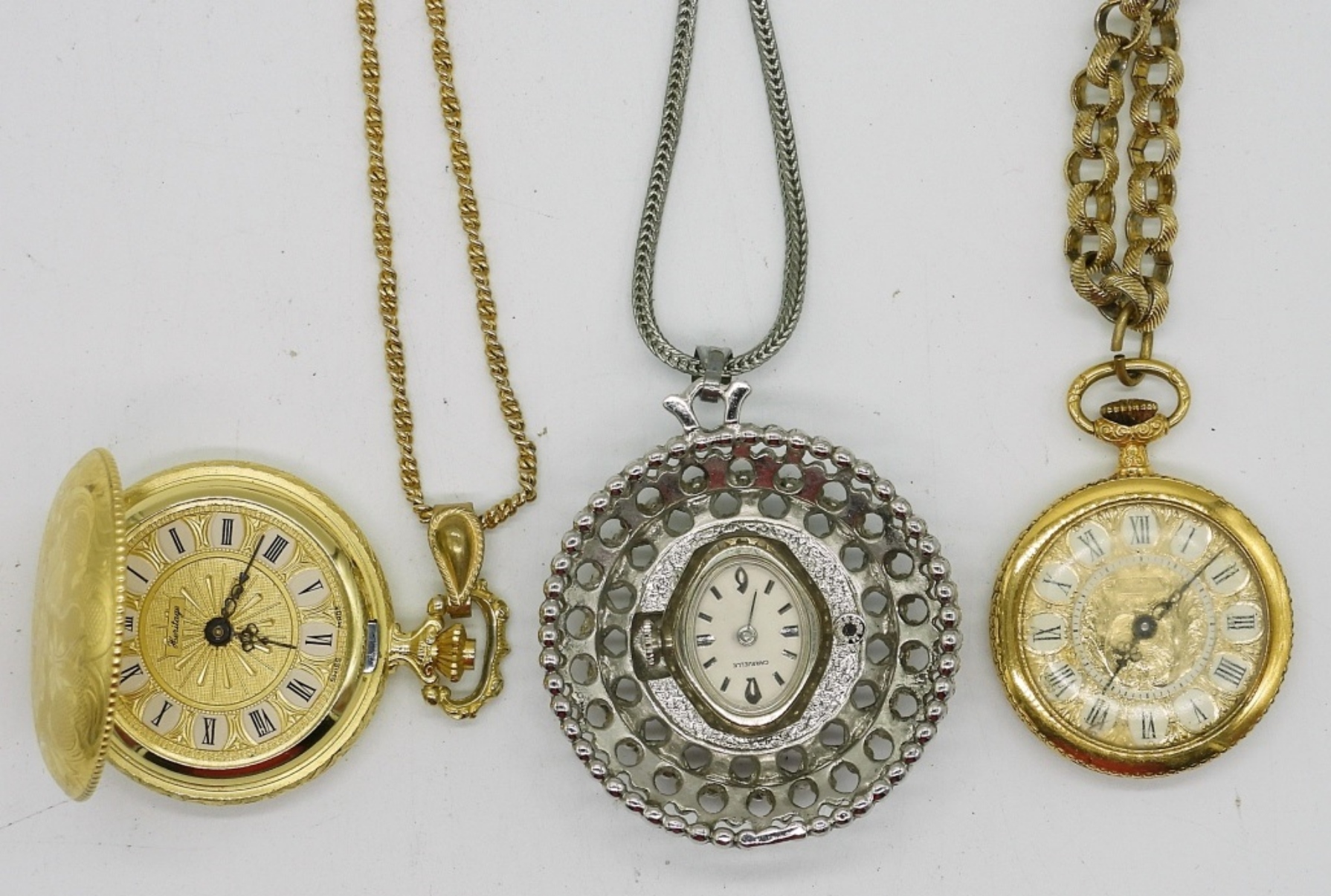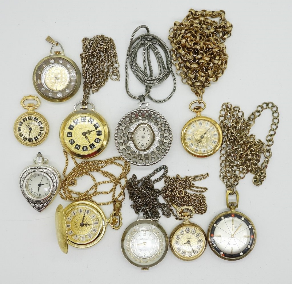 10 LADIES GOLD AND SILVER TONE PENDANT WATCHES. (NOT TESTED AS TO WORKING OR NOT)