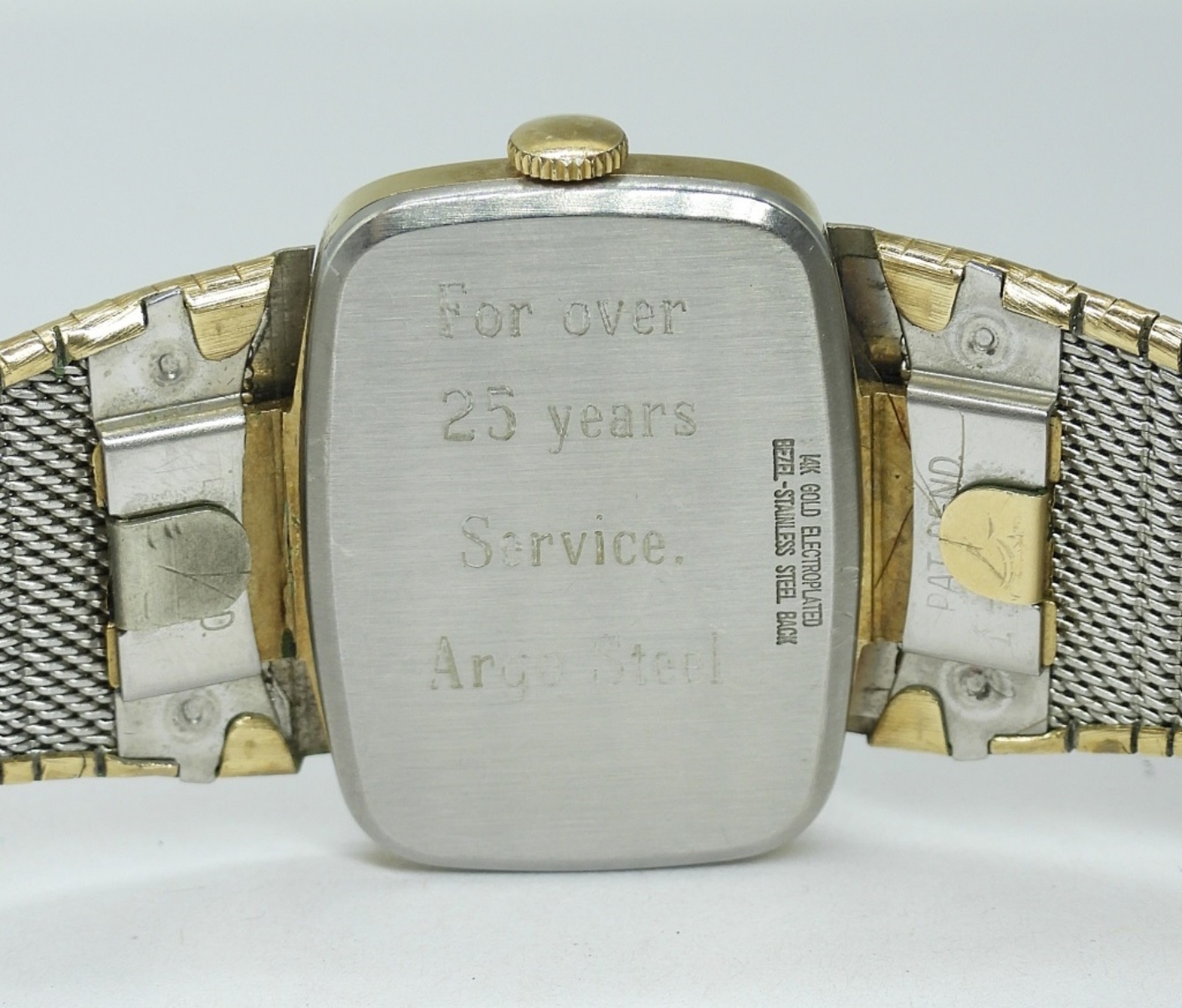 VINTAGE MEN’S LONGINES WATCH, 1/20 10kGF. ENGRAVED” FOR OVER 25 YRS SERVICE-ARGO STEEL (NOT TESTED AS TO WORKING OR NOT)