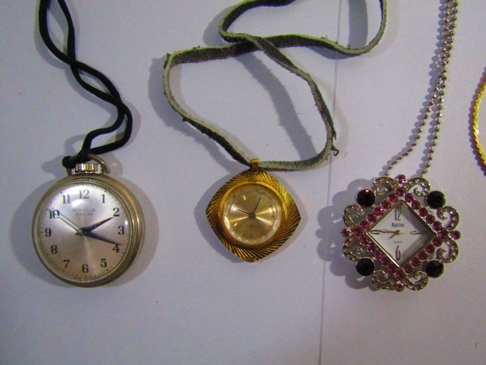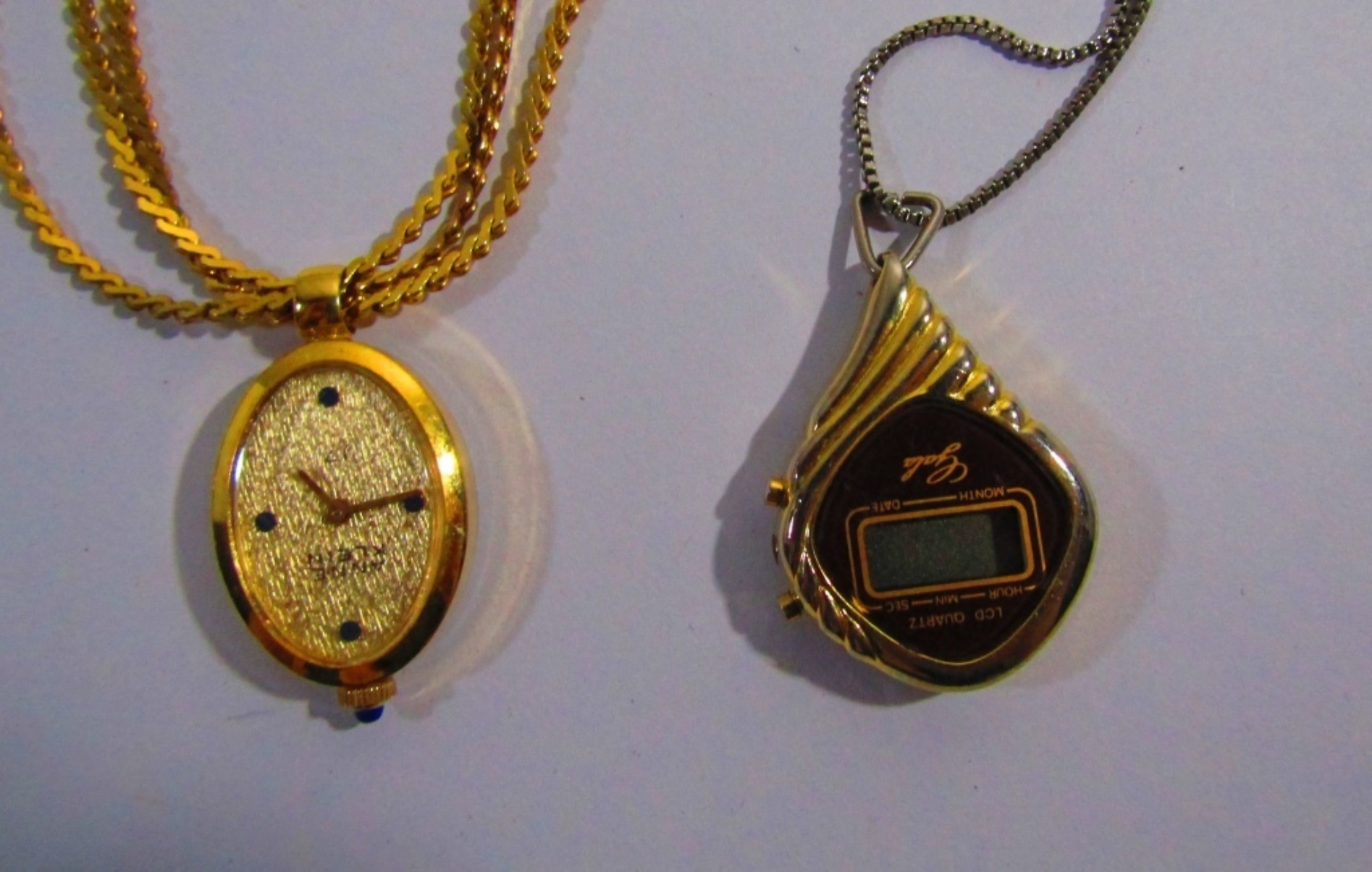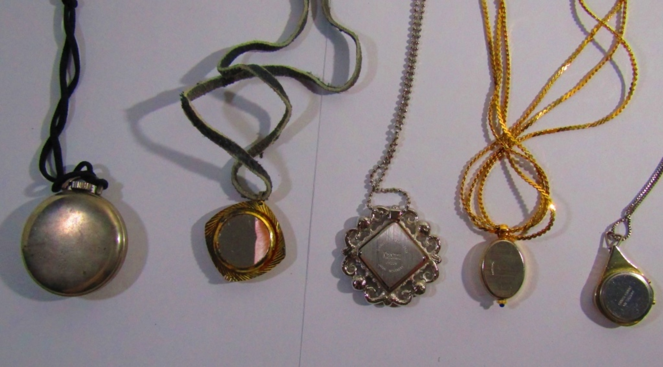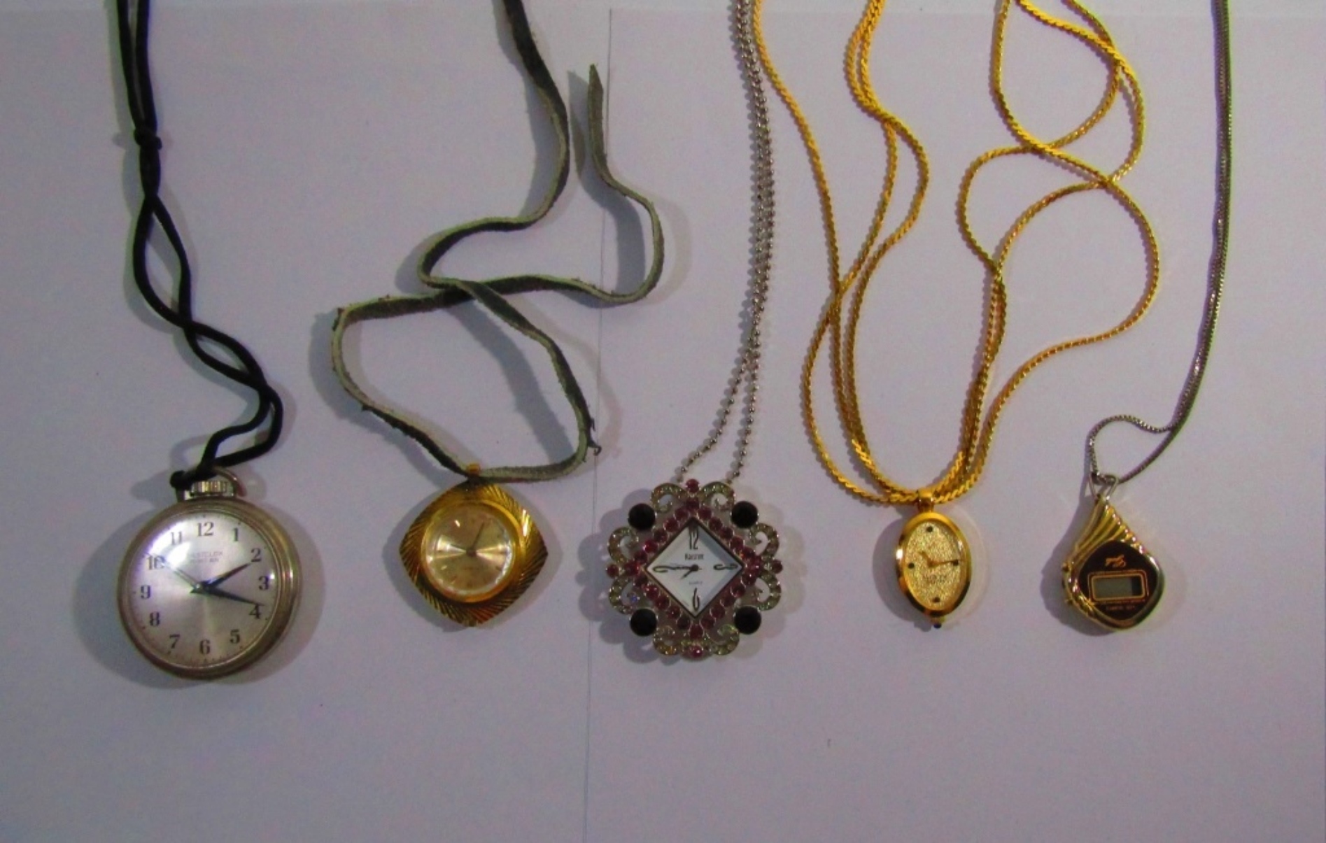 MIX OF GOLD SILVER AND COLOR PENDANT WATCHES UNTESTED