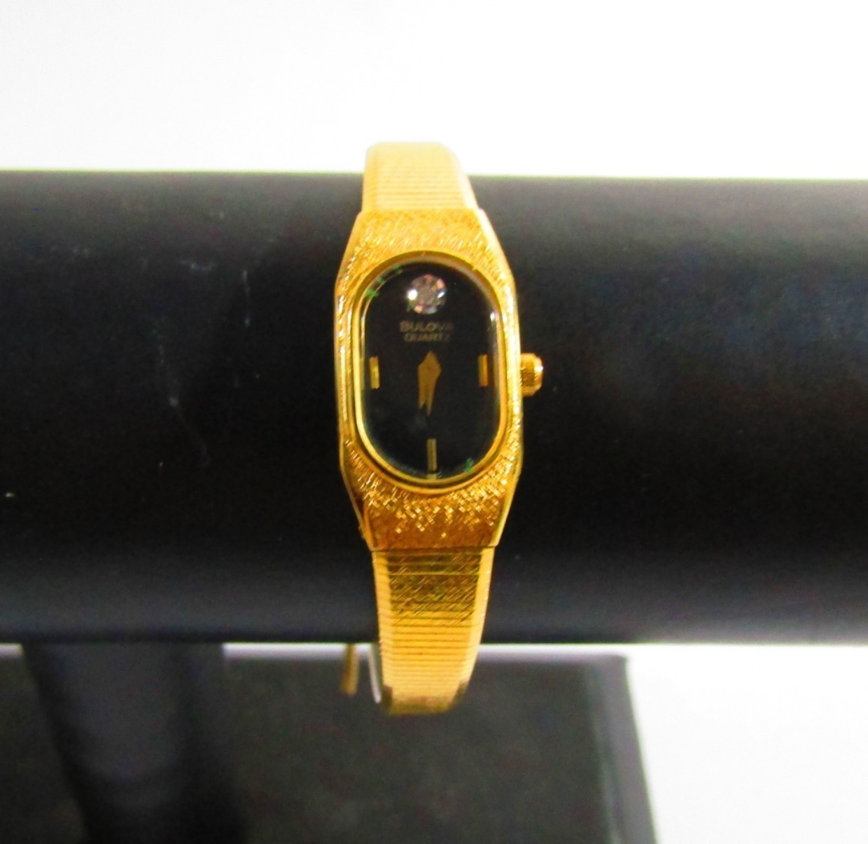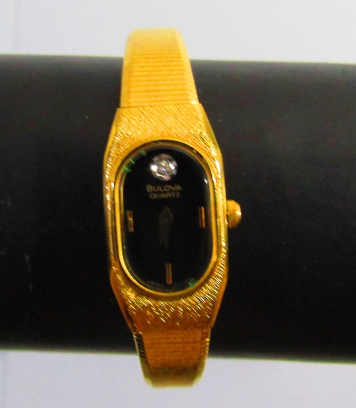 BULOVA GOLD TONED WOMENS WATCH WITH BLACK FACE UNTESTED