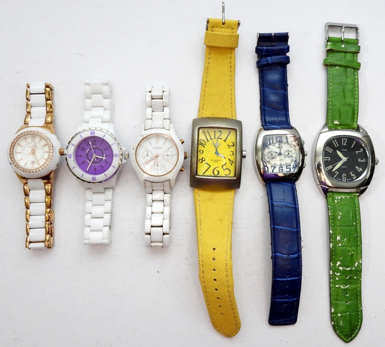 WHITE, YELLOW, GREEN, BLUE – WIDE BANDS & LARGE FACES – ALL DIFFERENT BRANDS UNTESTED / UNVERIFIED