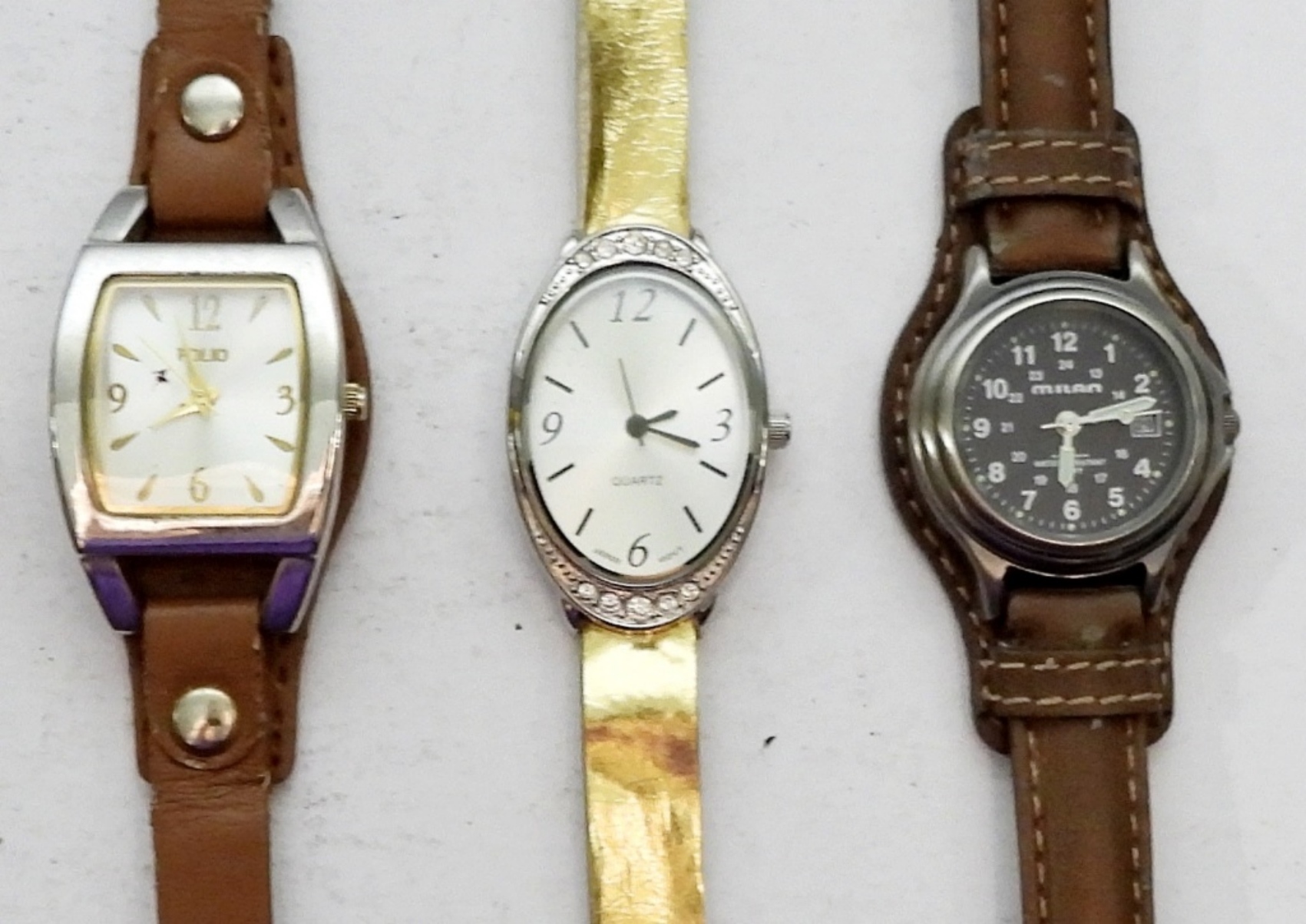 BROWN, TAN, WHITE & GOLD TONE LEATHER BANDS – ALL DIFFERENT BRANDS UNTESTED / UNVERIFIED