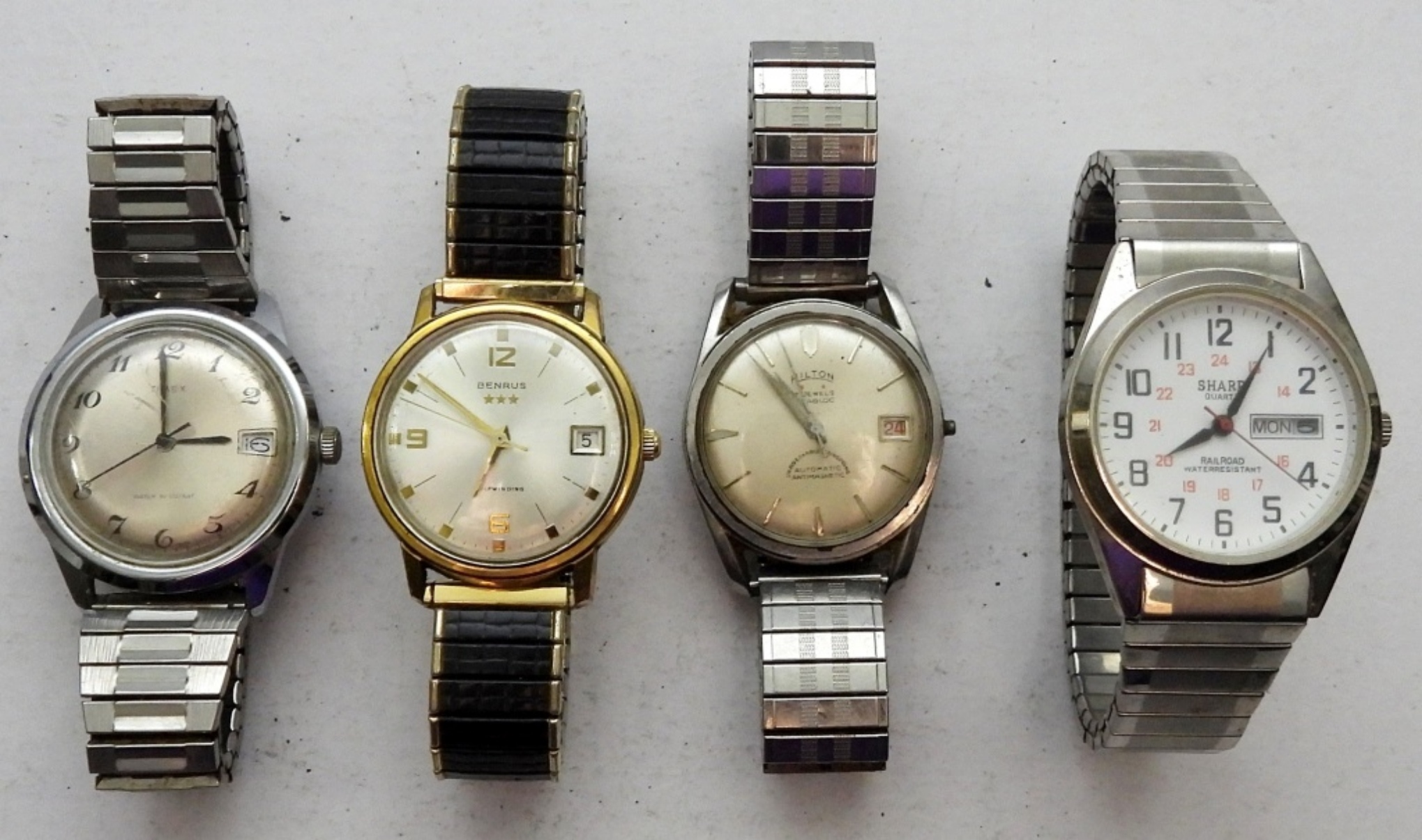 BLACK, SILVER & GOLD TONE – BENRUS, HILTON & MORE – ALL DIFFERENT BRANDS UNTESTED / UNVERIFIED