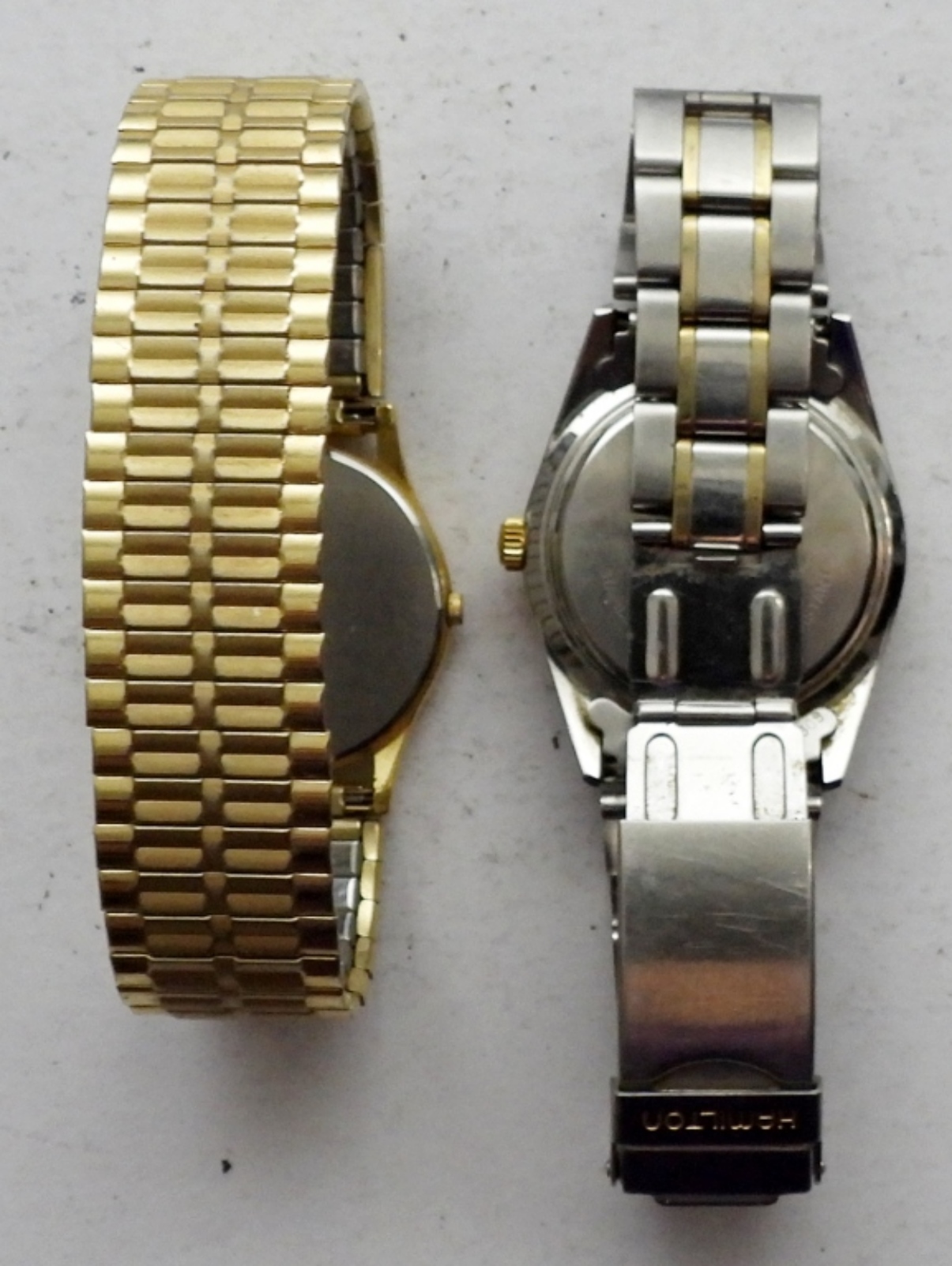 ANHEUSER-BUSCH & MASONIC – VINTAGE GOLD & SILVER TONE – HAMILTON & SEIKO – STRETCH & LINK STYLE BANDS UNTESTED / UNVERIFIED