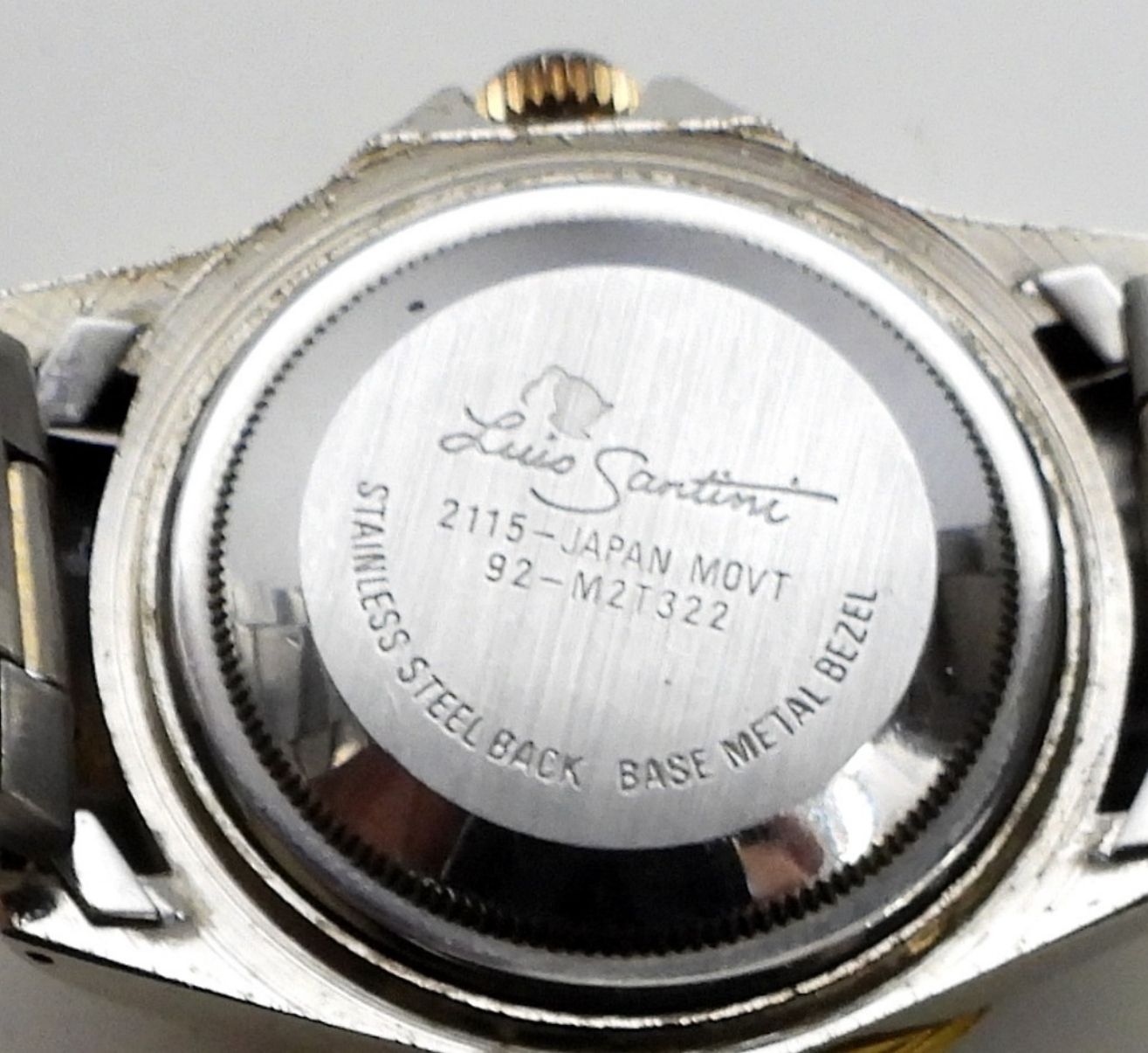 LUIS SANTINI 2115 JAPAN MOV’T – STAINLESS STEEL BACK, BASE METAL BEZEL UNTESTED / UNVERIFIED