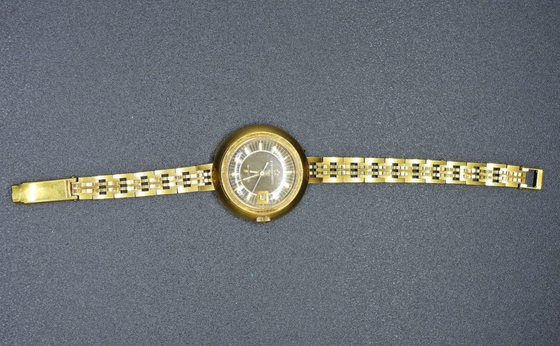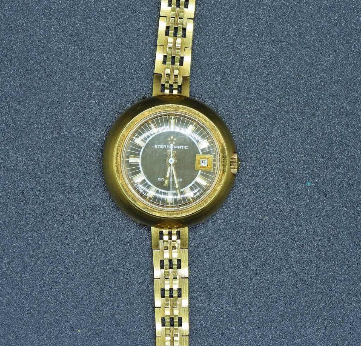 NOT TESTED BUT IS RUNNING.- ETERNAMATIC ANATOMIC VINTAGE LADIES GOLD TONE (MARKED ROLLED GOLD) WATCH.