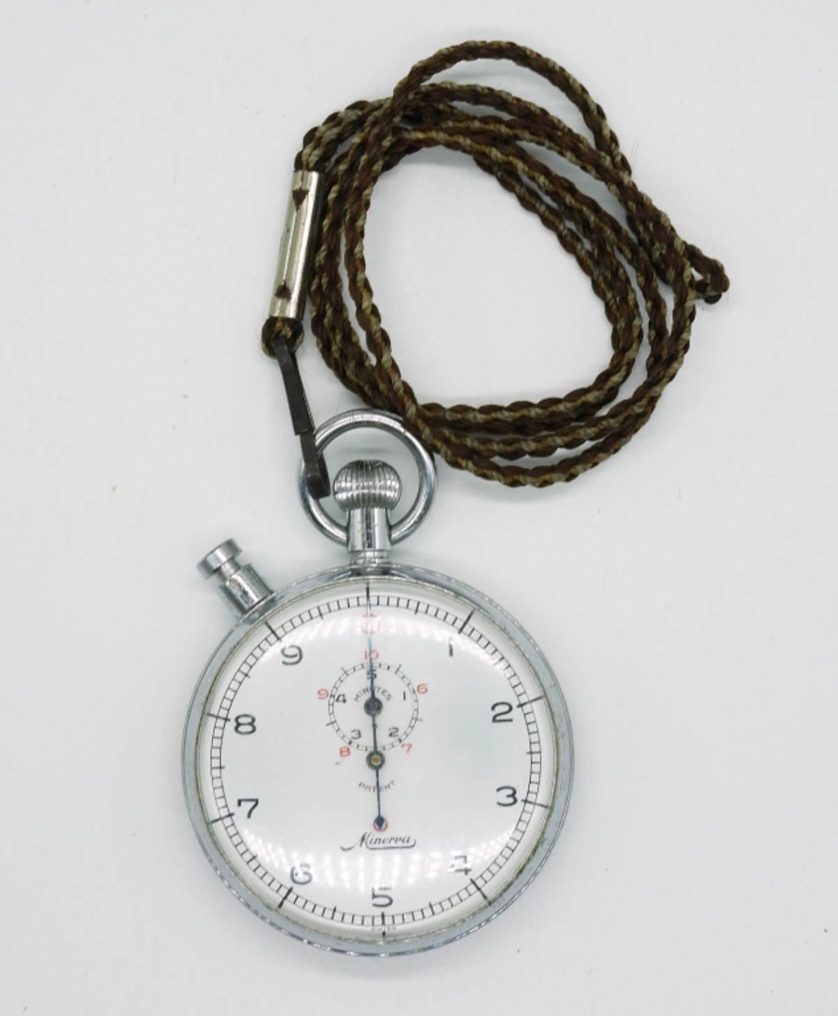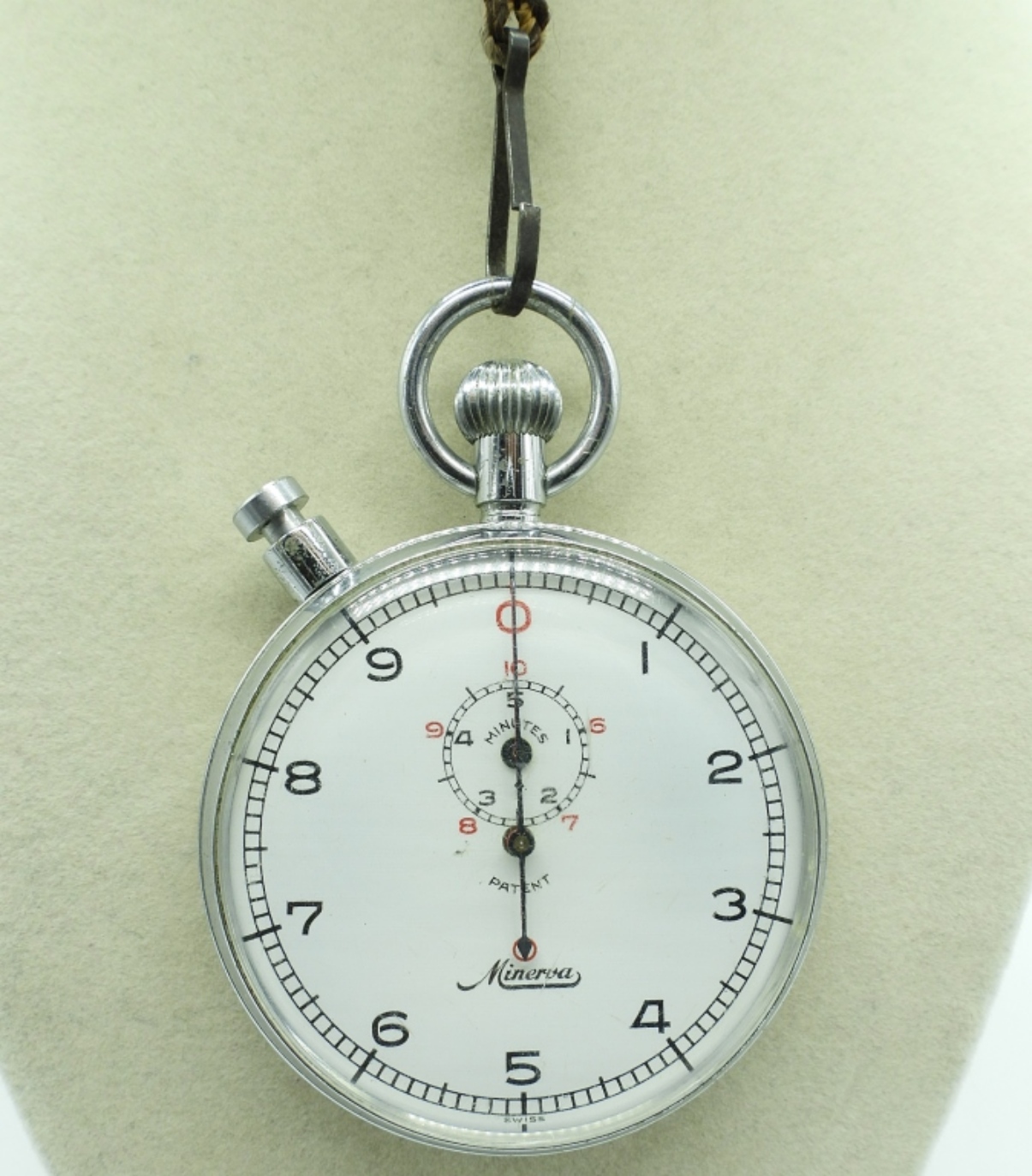 VINTAGE WORKING MIVERVA STAINLESS STEEL STOPWATCH, SWISS MADE. ON A LONG CORD, WORKS WELL!