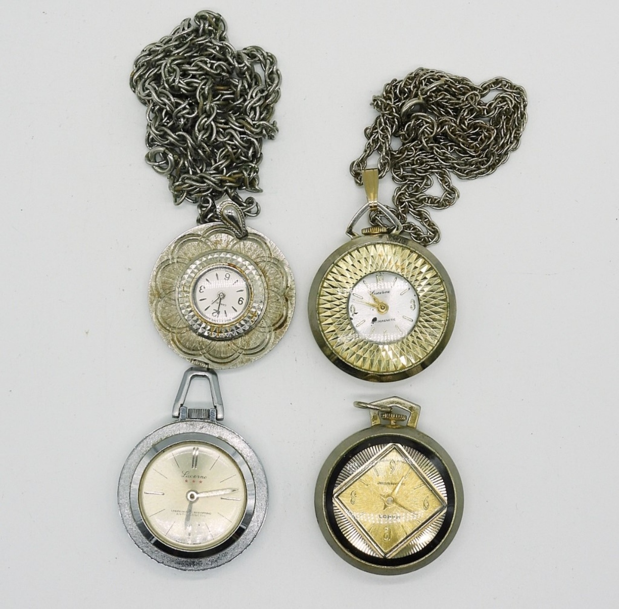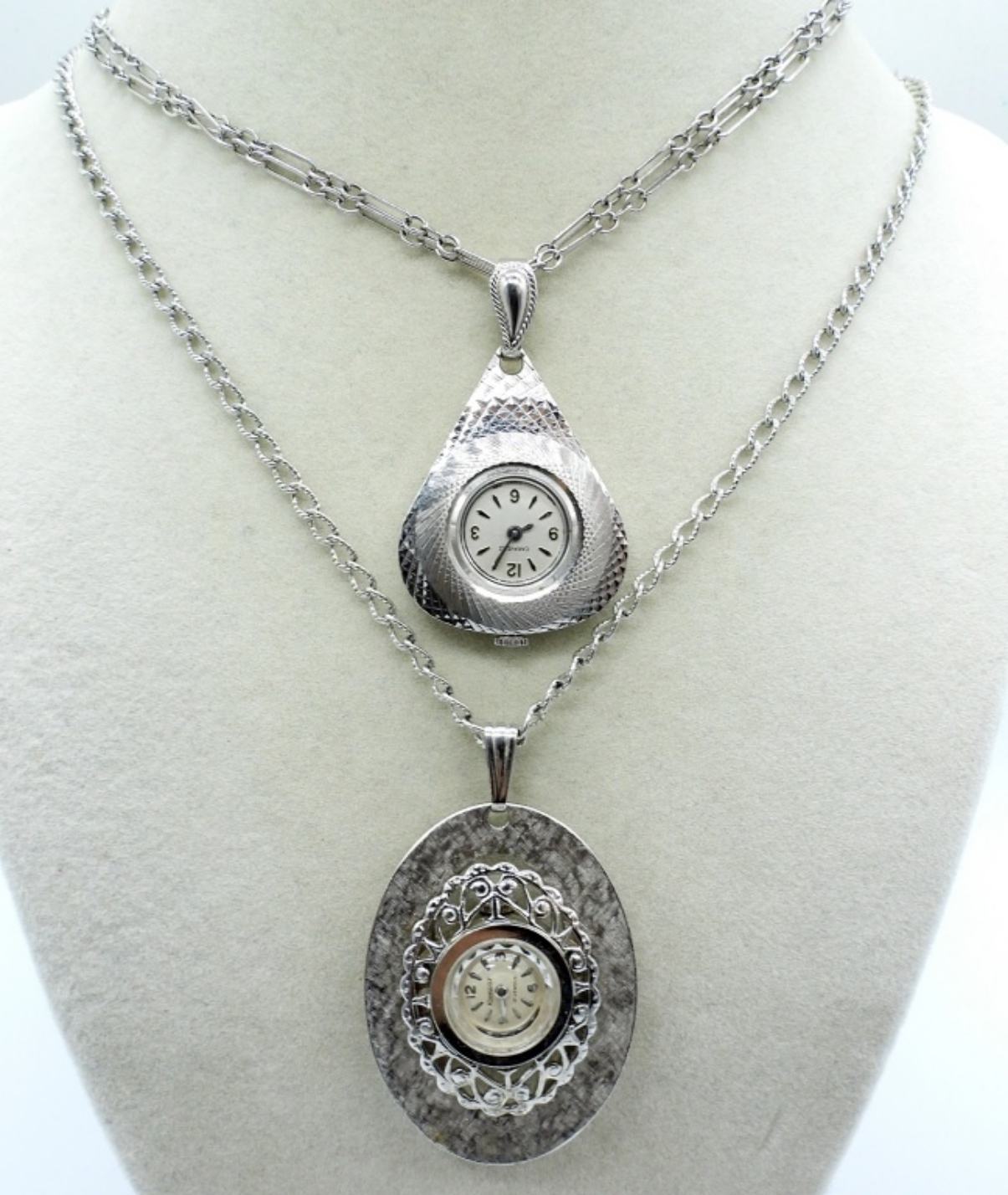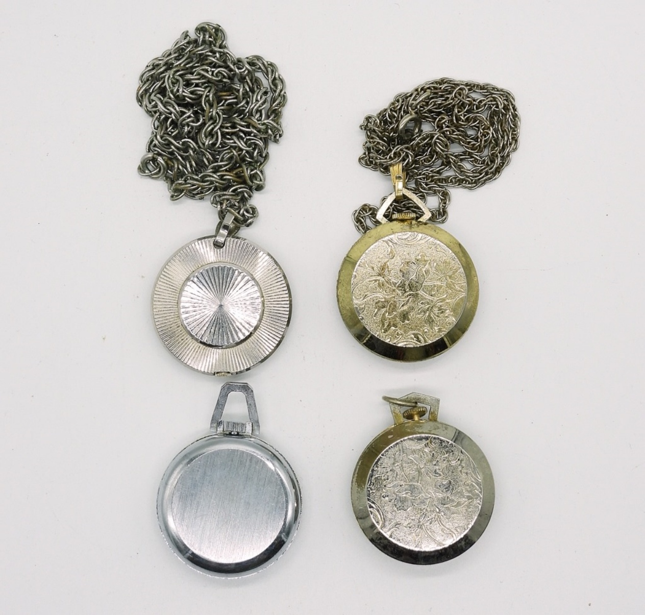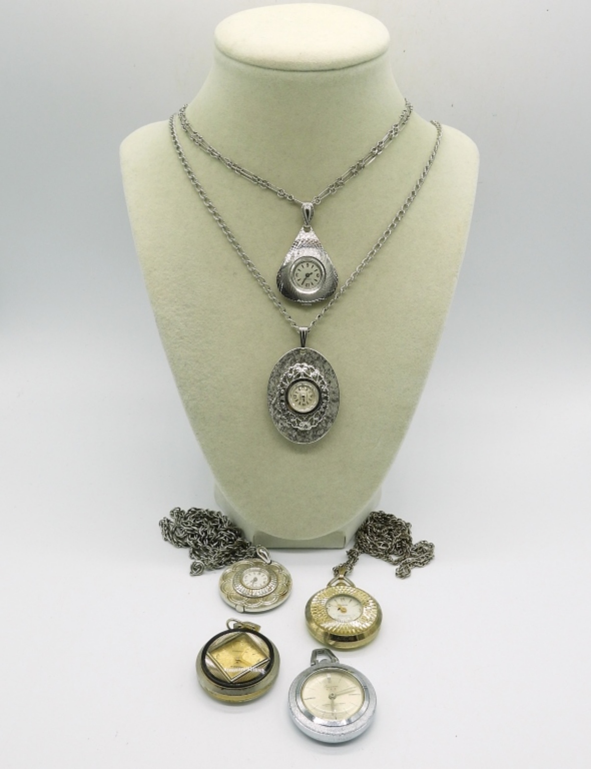 6 SILVER TONE NECKLACE WATCHES – SEE PHOTOS (NOT TESTED AS TO WORKING OR NOT)