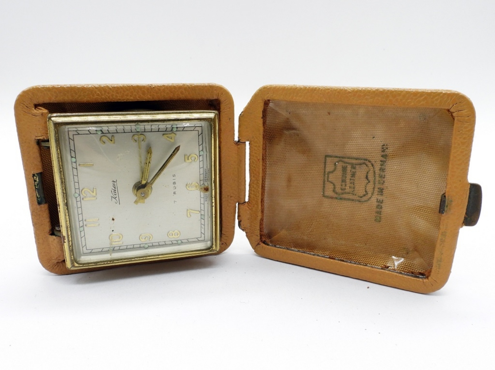 KAISER ANTIQUE TRAVEL ALARM CLOCK 7 JEWELS MADE IN GERMANY. (NOT TESTED AS TO WORKING OR NOT)