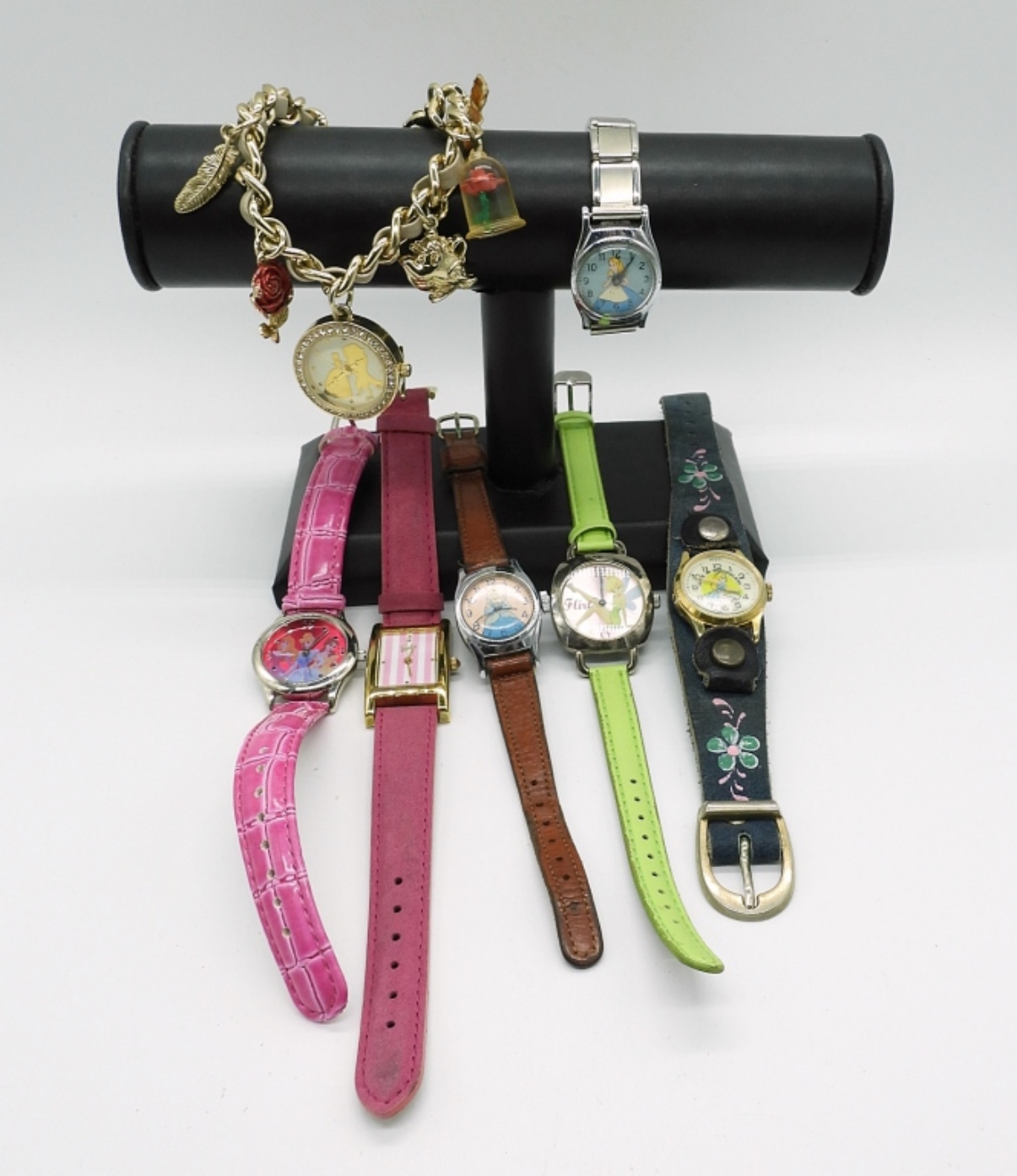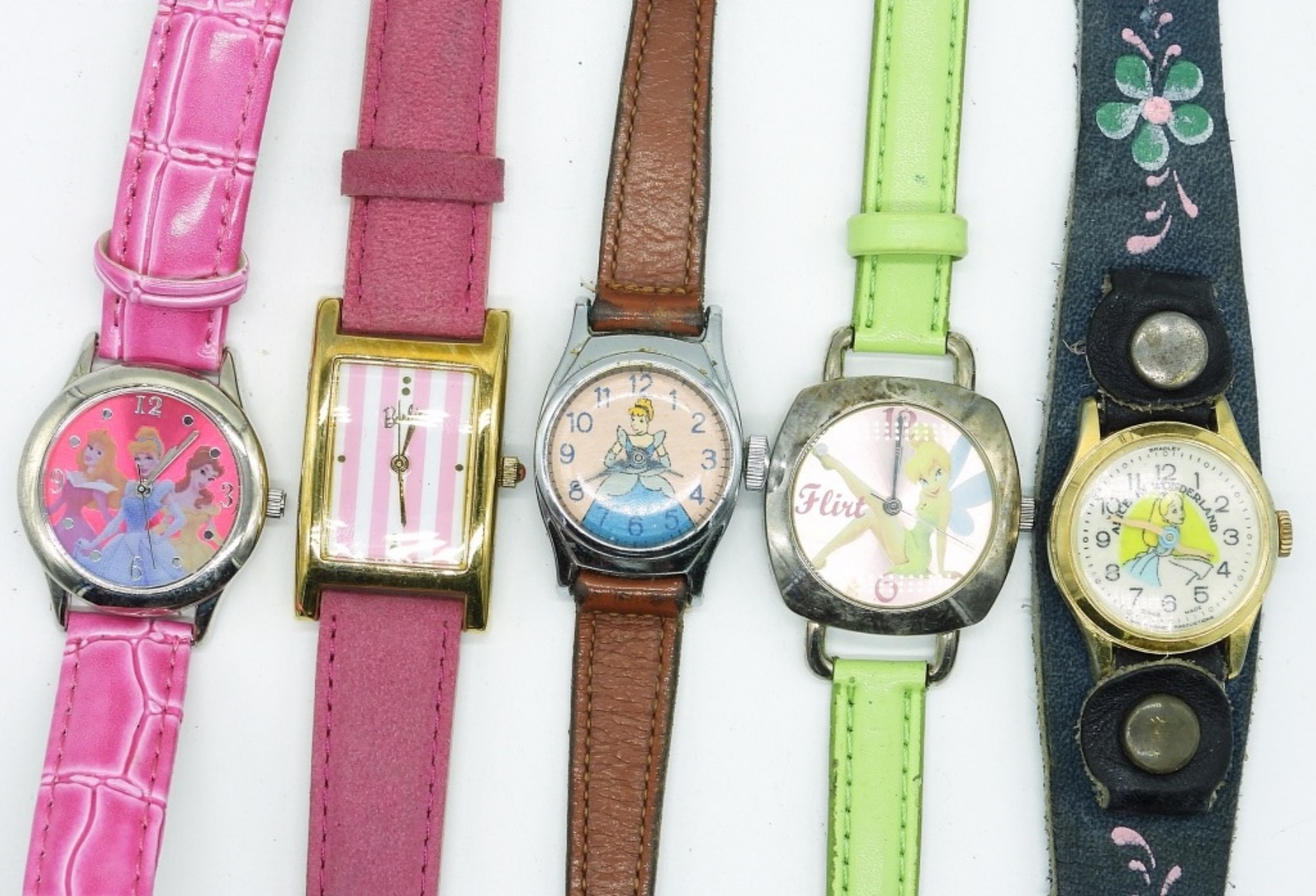 DISNEY PRINCESSSES, TINKERBELL, ALICE IN WONDERLAND & BARBIE WATCHES. SEE PHOTOS. (NOT TESTED AS TO WORKING OR NOT)