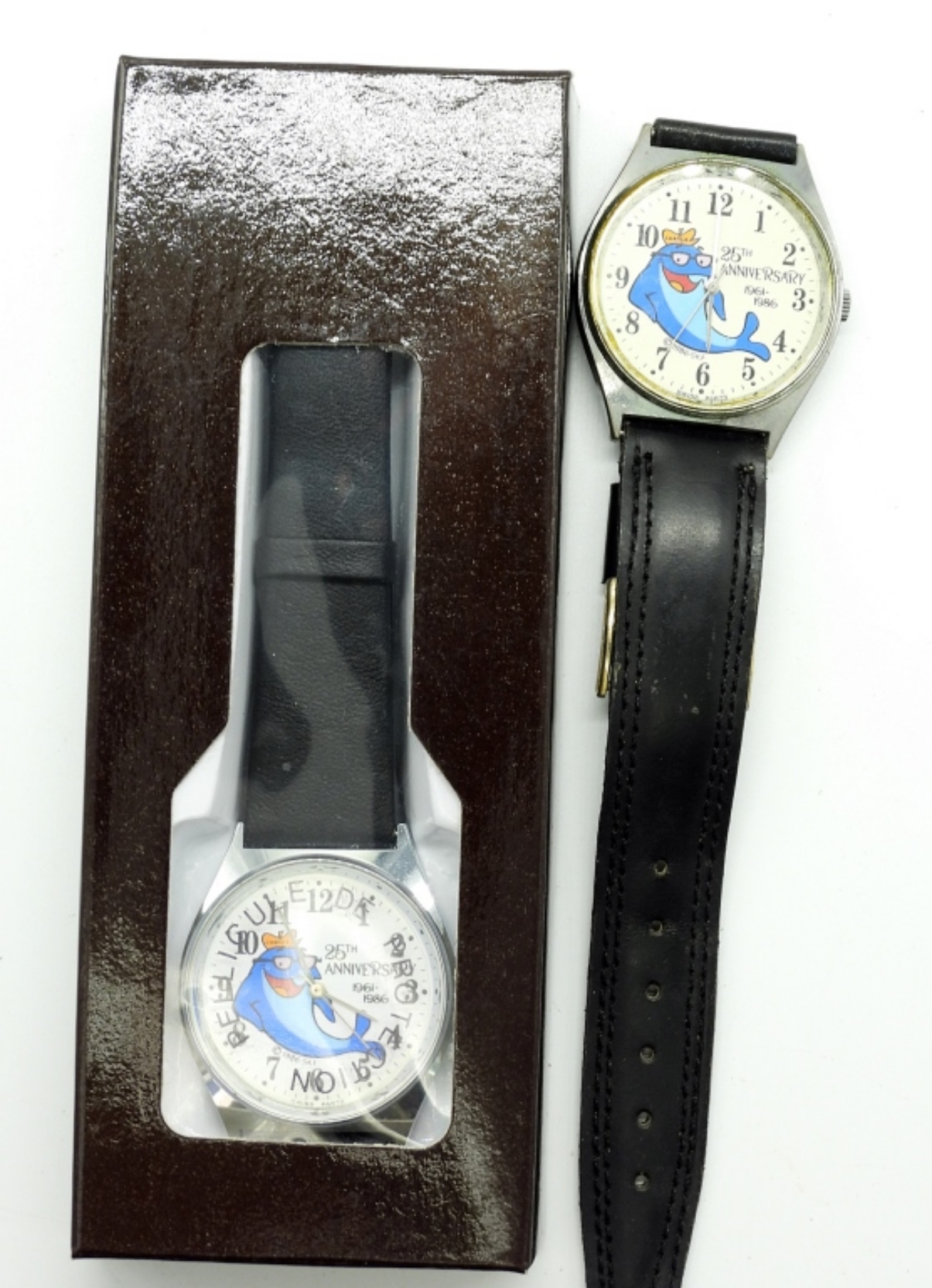 1 NEW IN BOX, 1 USED. CHARLIE THE TUNA 25TH ANNIVERSARY WATCHES 1961-1986. (NOT TESTED AS TO WORKING OR NOT)