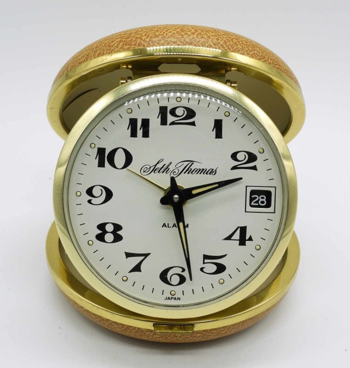 VINTAGE SETH THOMAS JAPAN TRAVEL ALARM CLOCK, SEEMS TO WORK. (NOT TESTED AS TO WORKING OR NOT)