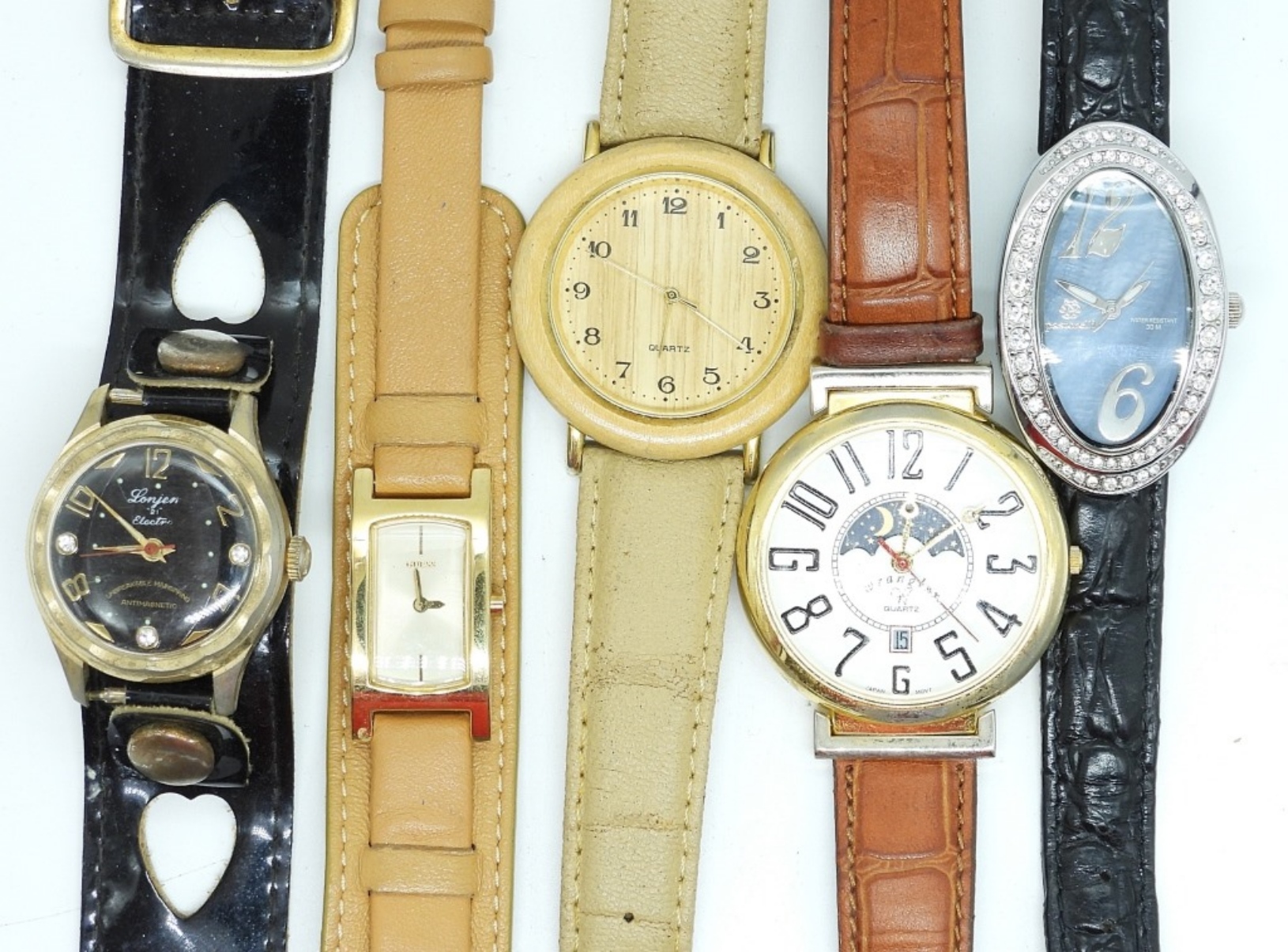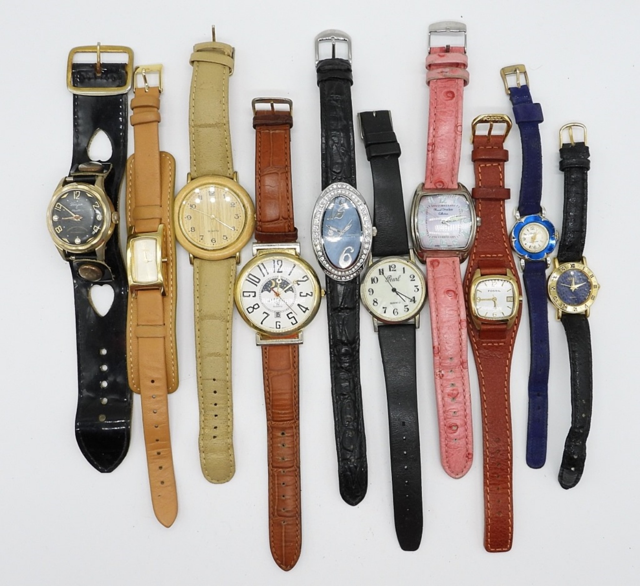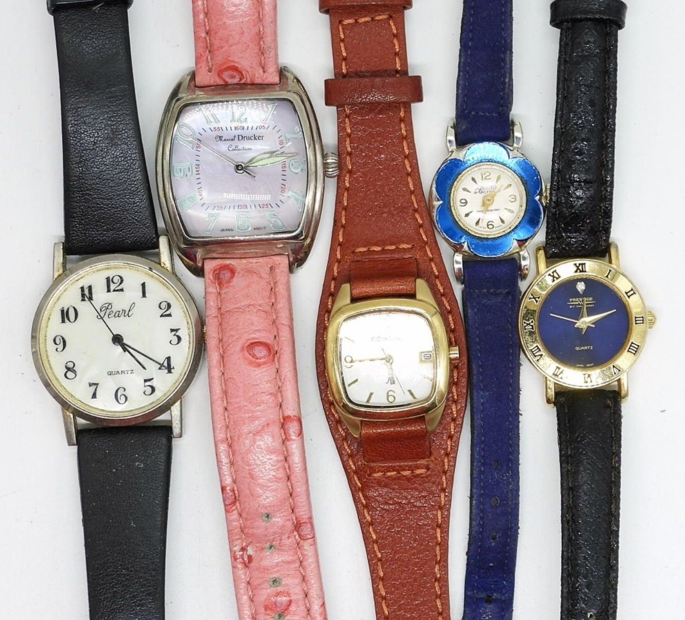 10 WOMEN’S COLORFUL LEATHER BAND WATCHES. GUESS, LONJEN, MARCEL DRUCKER, PRESTIGE, FOSSIL & MORE (NOT TESTED AS TO WORKING OR NOT)