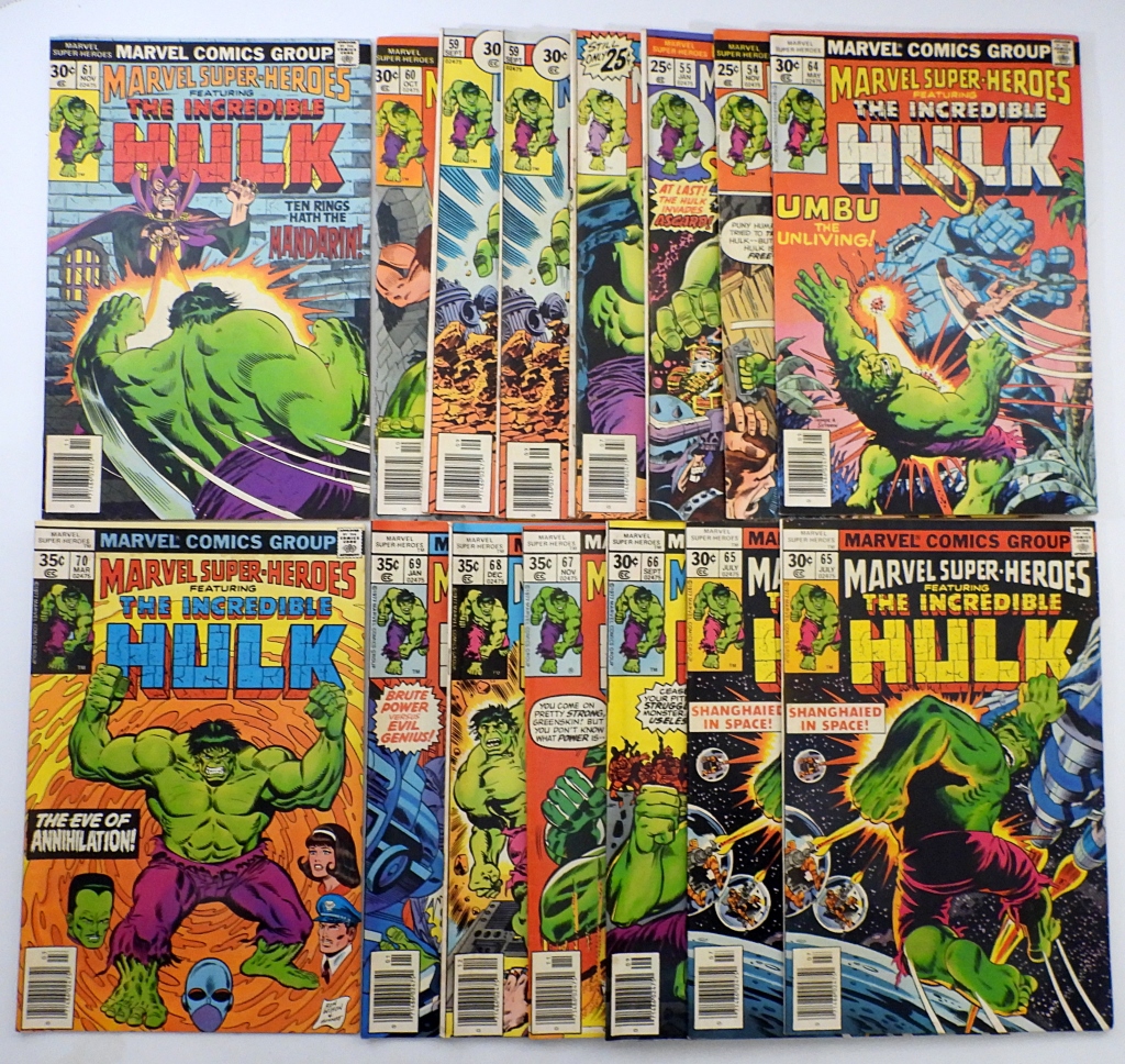 FEATURING THE INCREDIBLE HULK & SUB-MARINER – ISSUES #54, 55, 58, 59, 60, 61, 64, 65, 66, 67, 68, 69, 70 WITH DUPLICATES – VERY GOOD CONDITION