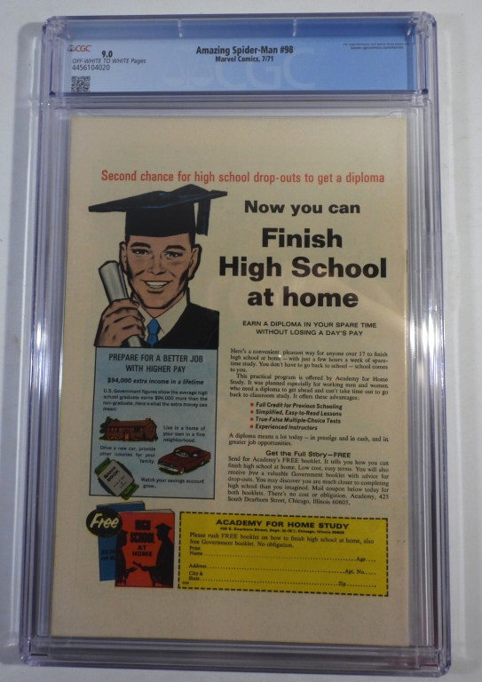 THE AMAZING SPIDERMAN #98 CGC GRADE OF 9.0 DRUG STORY NOT APPROVED BY THE COMICS CODE AUTHORITY