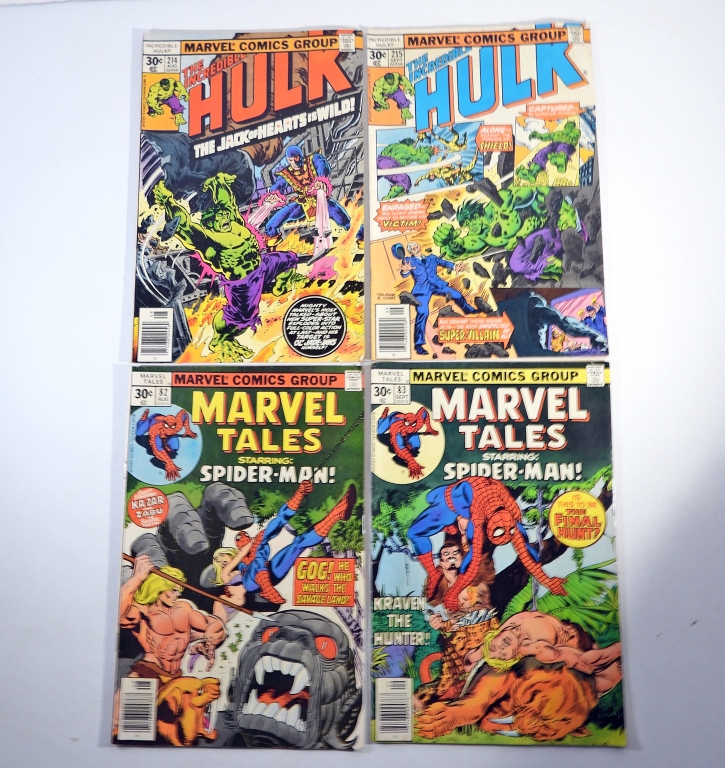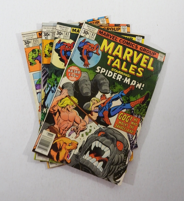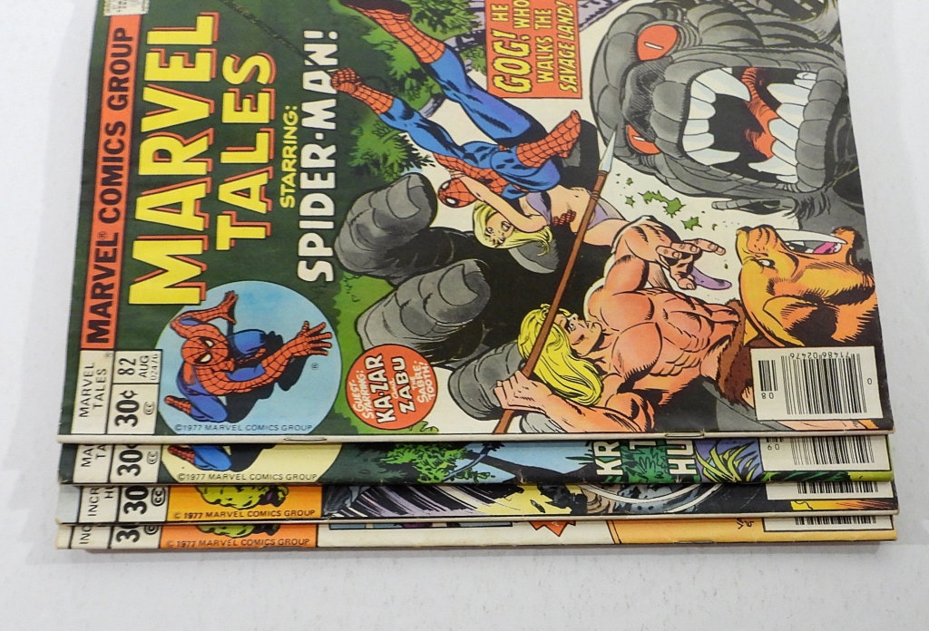 MARVEL TALES 1977 VG – 2 MARVEL TALES STARRING SPIDER MAN & KA-ZAR #82 & #83. 2 THE INCREDIBLE HULK #214 & #215