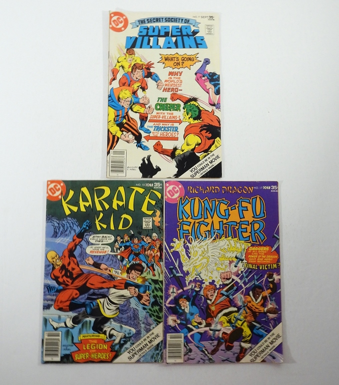 KUNG FU FIGHTER #17, VG, 1977 – KARATE KID #10, VG, 1977 – THE SECRET SOCIETY OF SUPER VILLAINS, #9, VG, 1977.