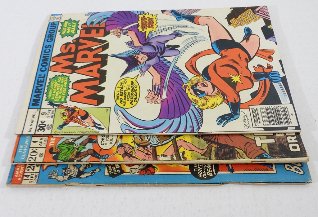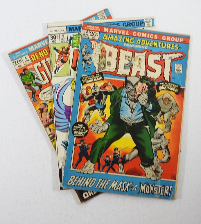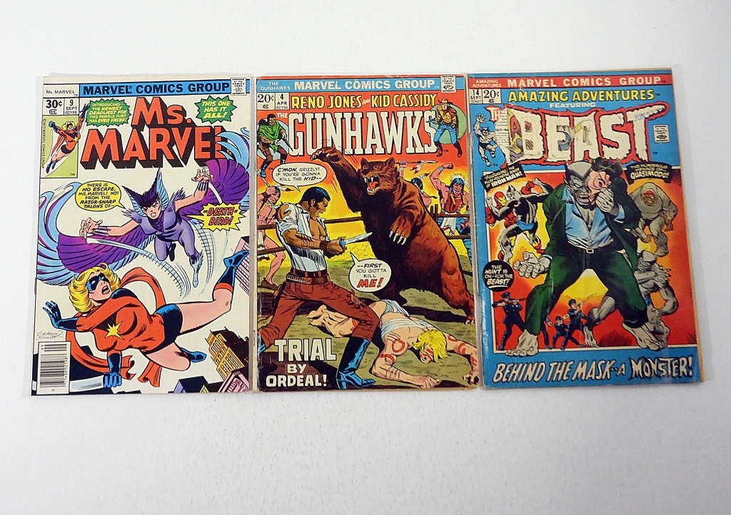 MARVEL MS. MARVEL #9 VG 1977 – RENO JONES & KID CASSIDY GUNHAWKS #4 VG 1973 – AMAZING ADVENTURES FEATURING THE BEAST # 14 FAIR 1972.