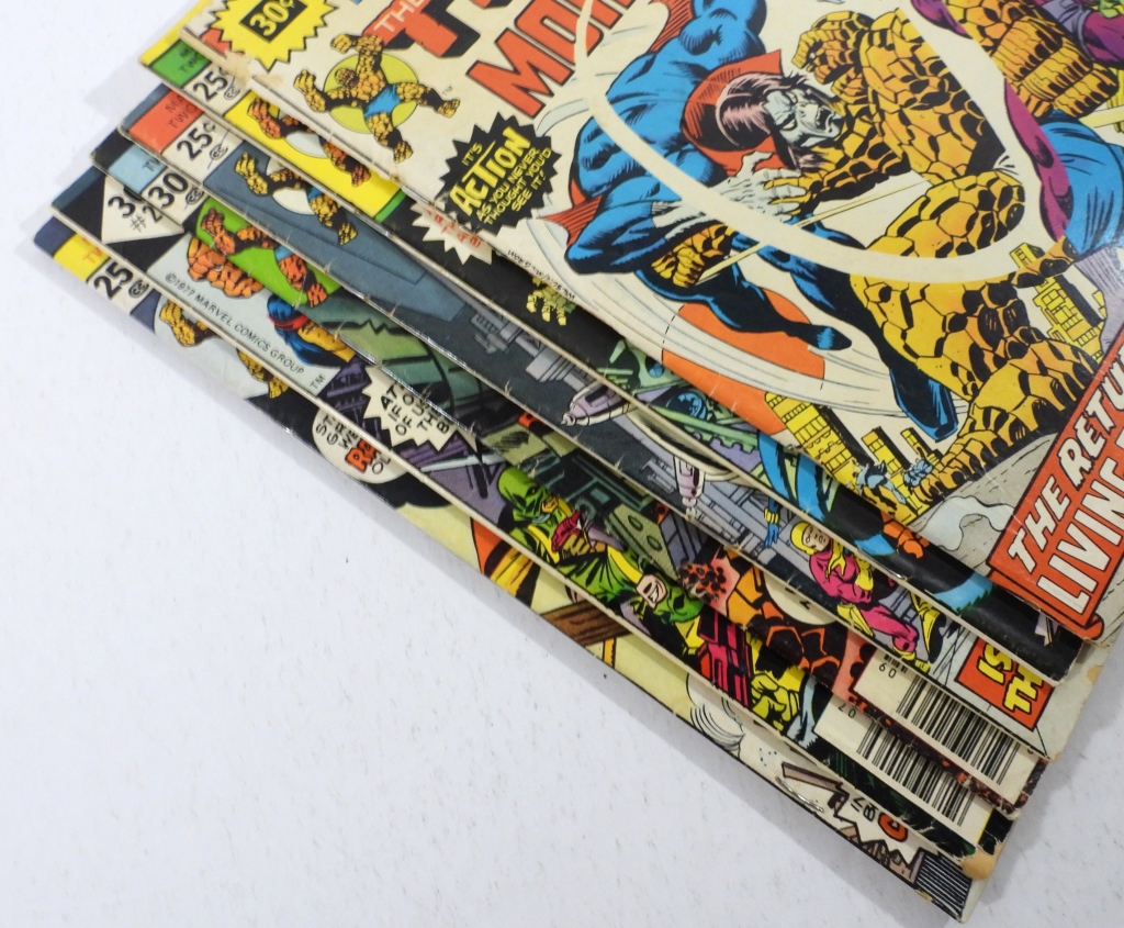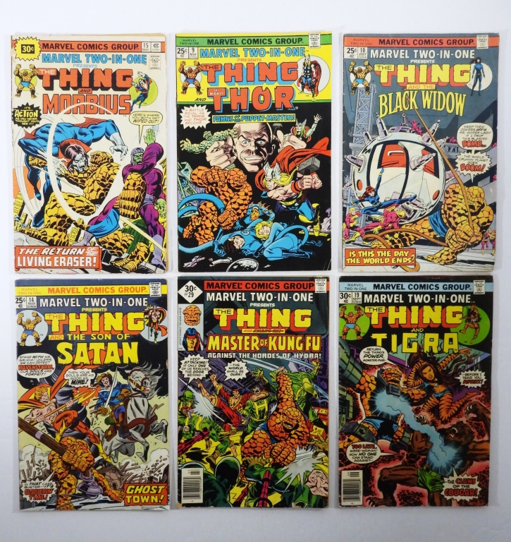 YEARS 75-77 ISSUES, 25C AND 30C, ISSUES #15 THE THING AND MORBIUS, #9 THE THING AND THE MIGHTY THOR, # 10THE THING AND THE BLACK WINDOW, #14 THE THING AND THE SON OF SATAN, #19 THE THING AND TIGRA, #29 THE THING AND