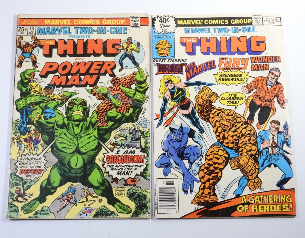 GOOD CONDITION, 1-25C ISSUE #13 MARVEL TWO-IN-ONE PRESENTS THE THING AND THE POWER MAN, 1- 40 CENT ISSUE #40 MARVEL TWO-IN-ONE THE THING GUEST STARRING THE BEAST, MS MARVEL, NICK FURY, AND WONDER MAN