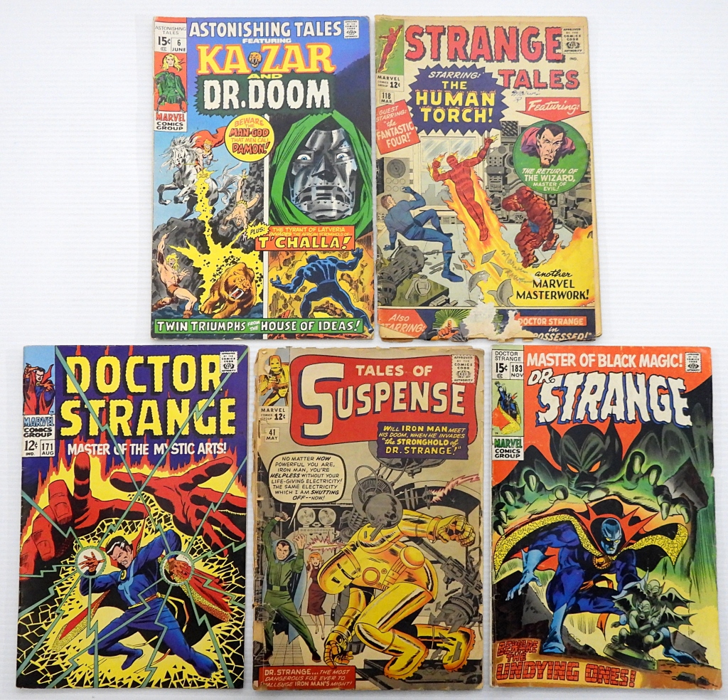 DR. STRANGE ISSUES #171 & #183, TALES OF SUSPENSE #41, STRANGE TALES #118, KA-ZAR AND DR. DOOM #6 (2- COVERS ARE DETACHED) – GOOD/FAIR CONDITION