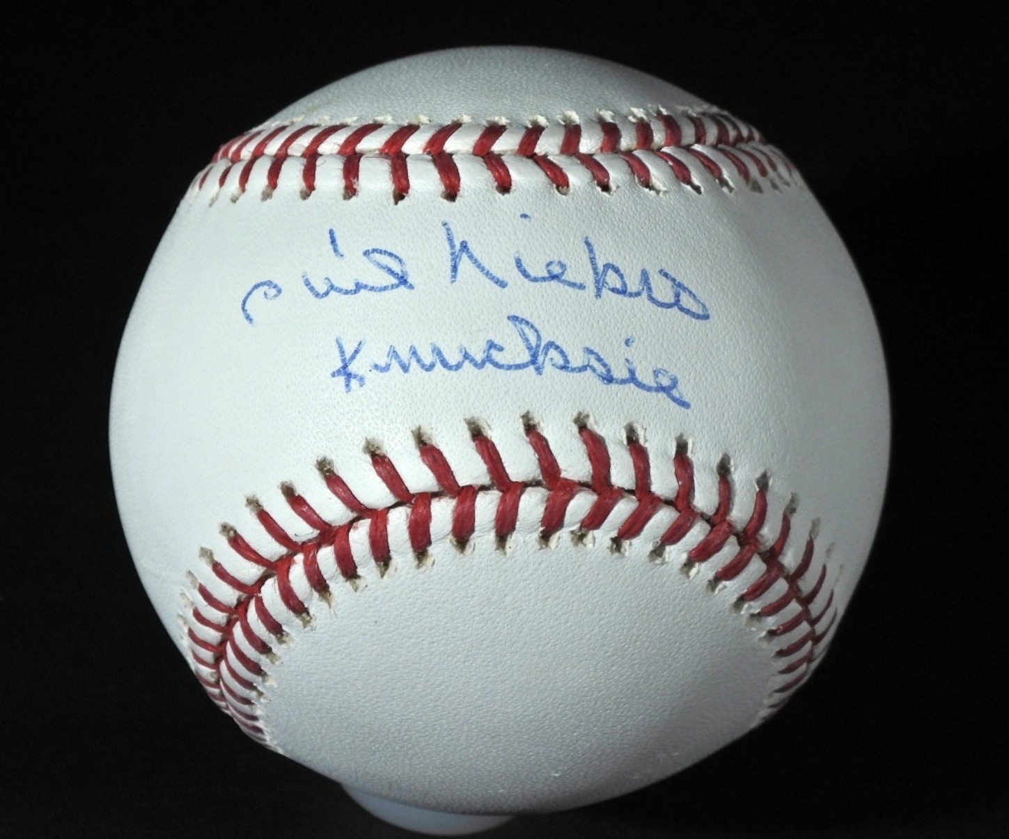 BECKETT COA CERTIFICATION NUMBER: D62639, SIGNED PHIL NIEKRO KNUCKSIE ON A RAWLINGS OFFICIAL MAJOR LEAGUE BALL, IN A CASE