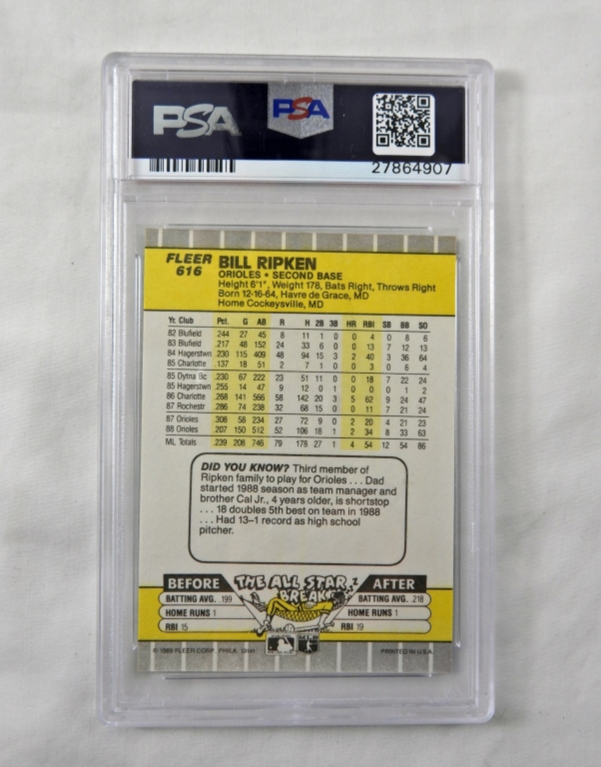 PSA FLEER 1989 BILL RIPKEN FF ERROR. #616 MINT 9, 27864907