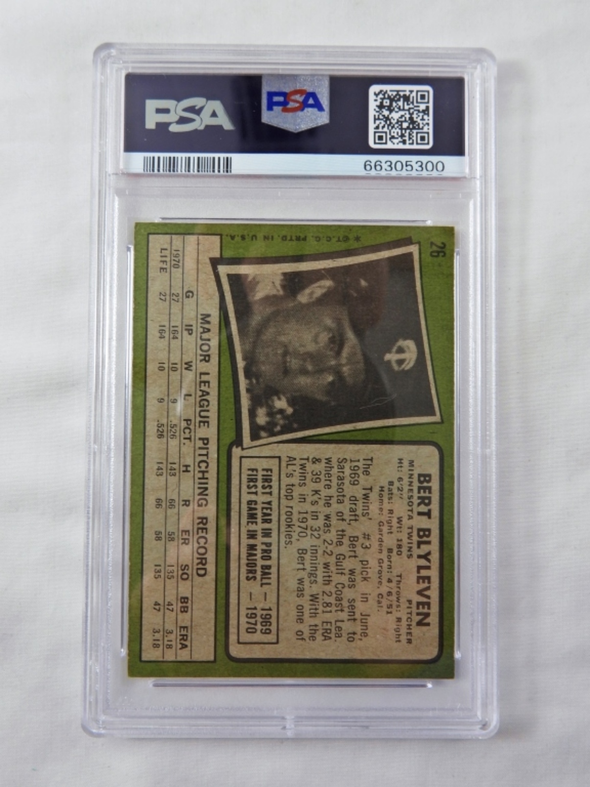 PSA TOPPS 1971 BERT BLYLEVEN #26 EX 5, 66305300