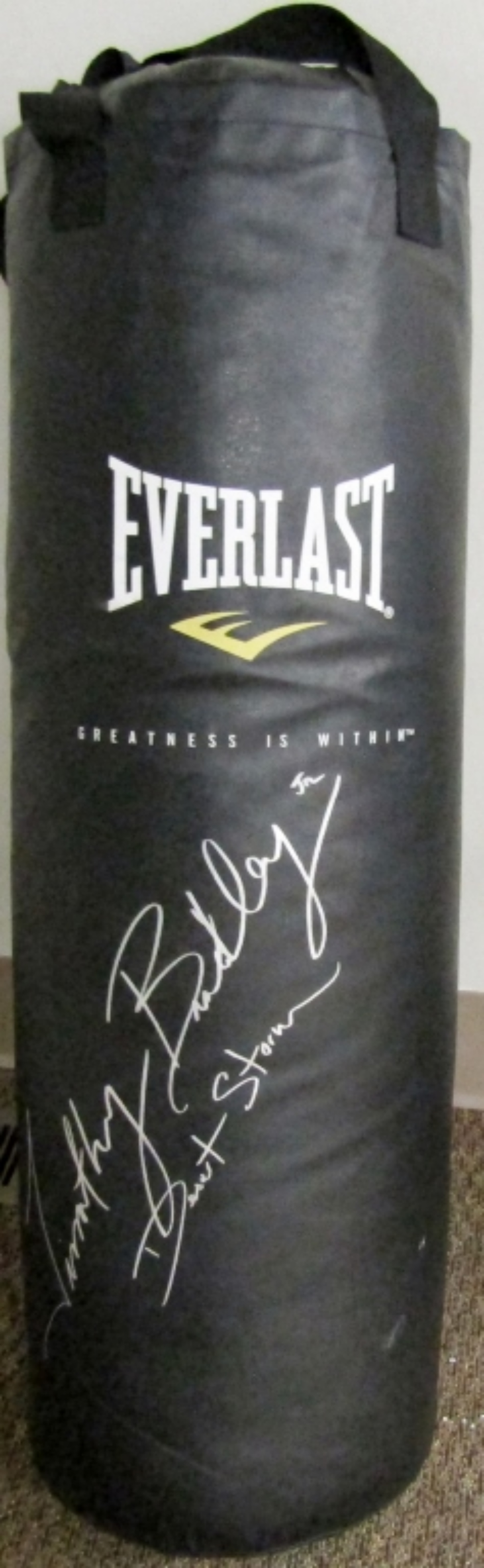 SIGNED EVERLAST 100lb PUNCHING BAG – FULL SIZE – AUTOGRAPHED – NO COA , (PICK-UP AVAILABLE ON THIS LOT ONLY)